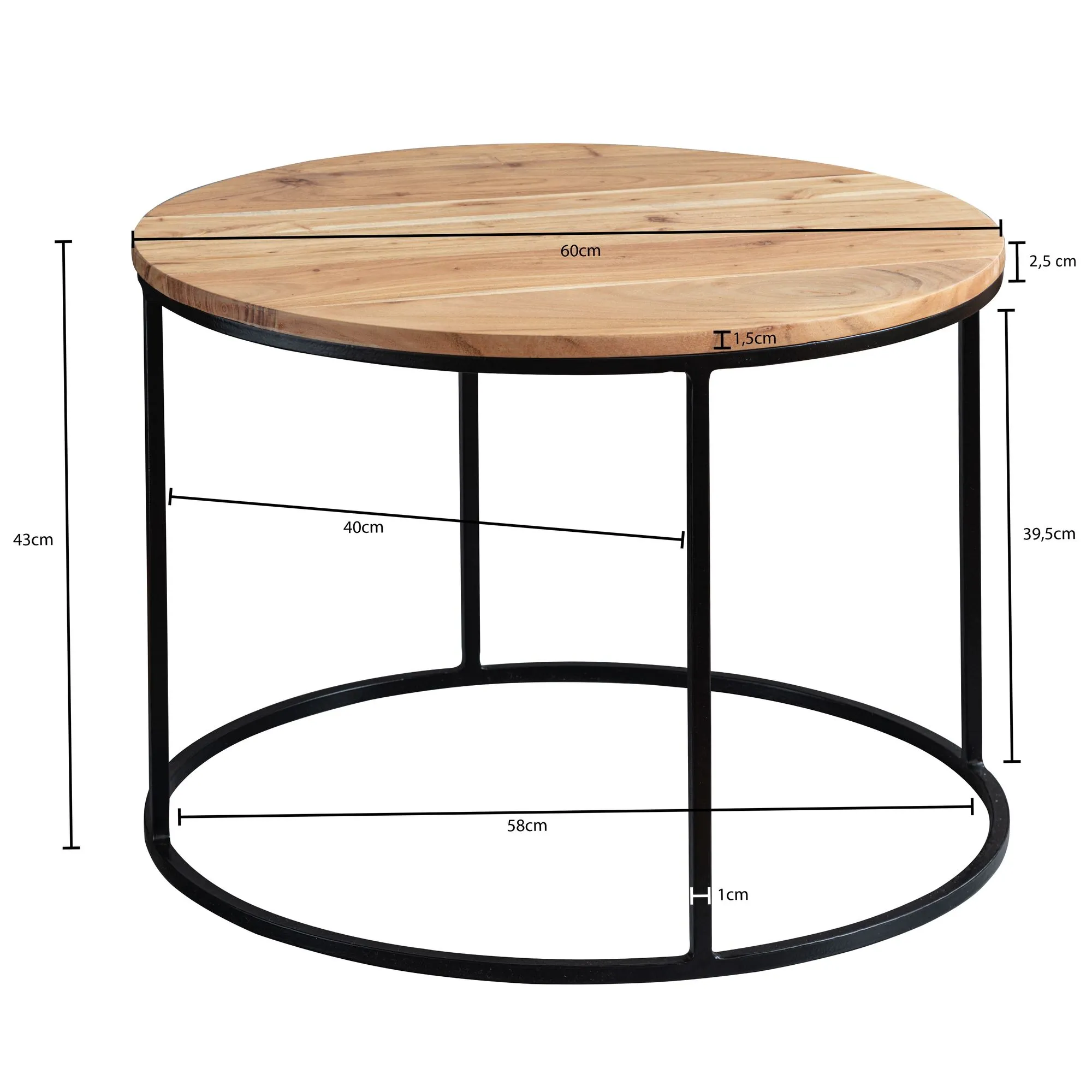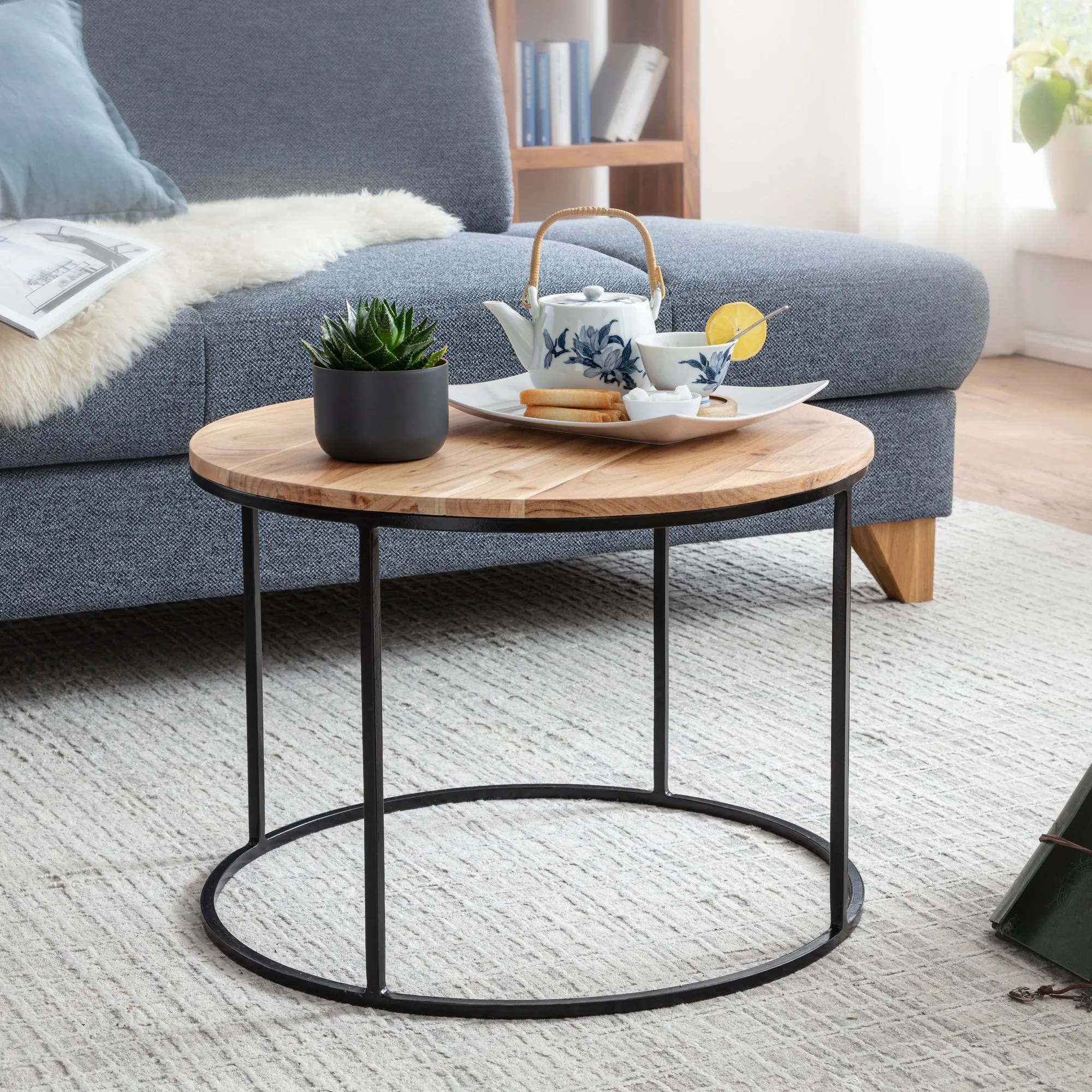 tinkaro runder Sofatisch RADHA Akazie Massivholz 013162 Wohnzimmertisch Couchtisch Braun