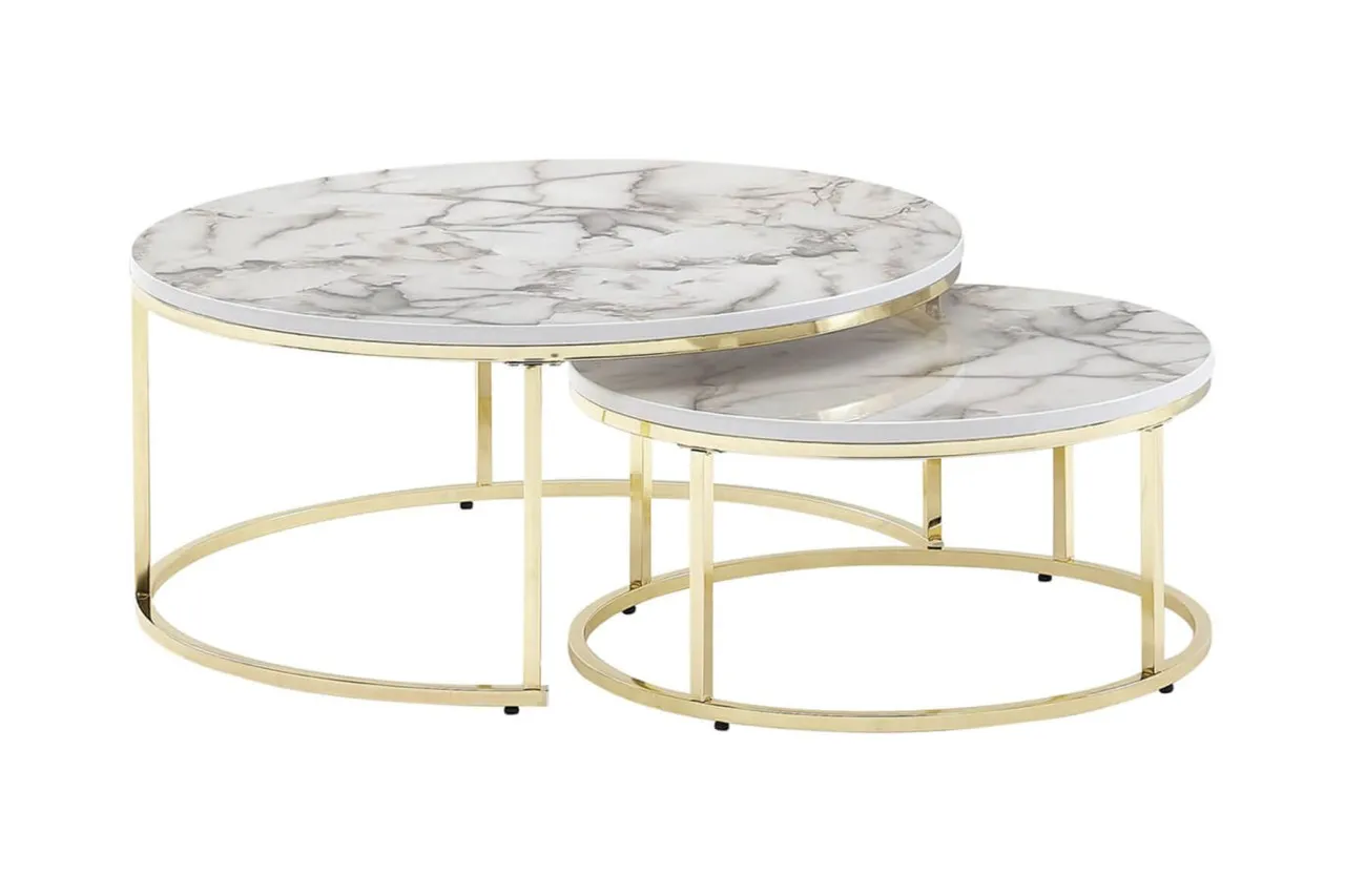 tinkaro Sofatisch Set YUVA Mamor Optik weiß 013272 Wohnzimmertisch 2er-Set Couchtisch modern