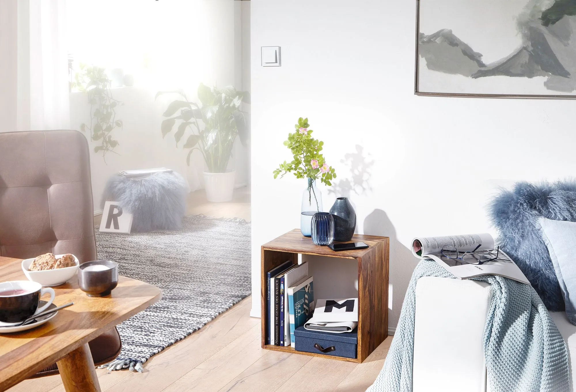 tinkaro eckiges Standregal REIMER Massivholz Sheesham 012638 Cube Regal Nachttisch Braun