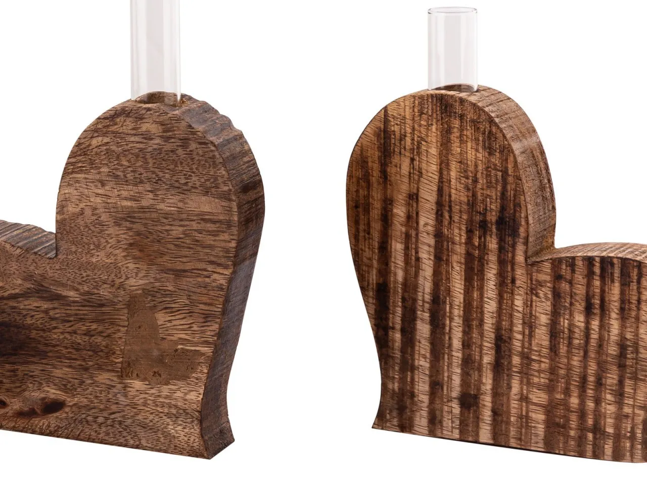 - Herzen aus massivem Mangoholz mit schöner Maserung für romantische Highlights