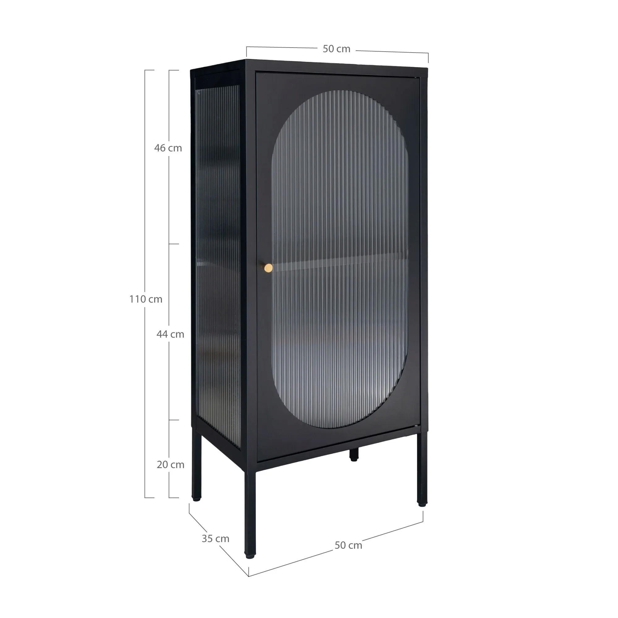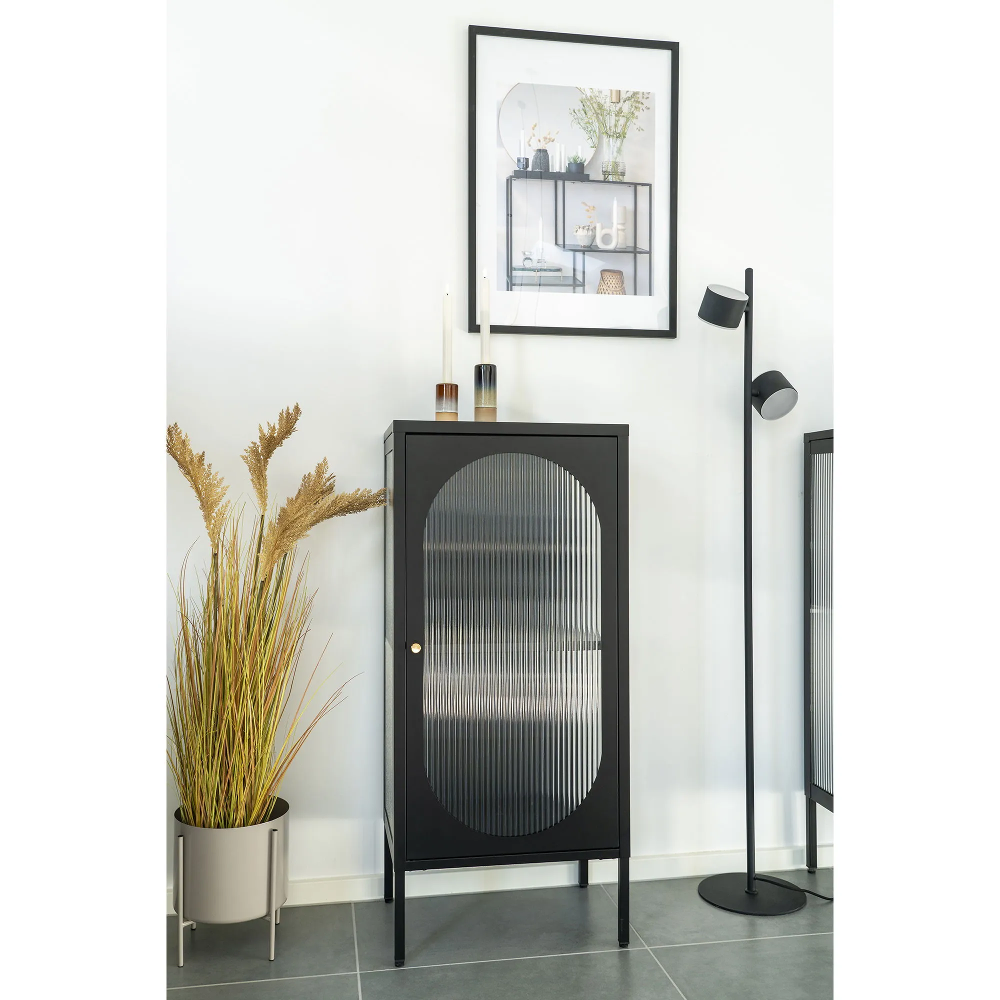 Vitrinenschrank Adelaide Stahl mit schwarzem Glas
