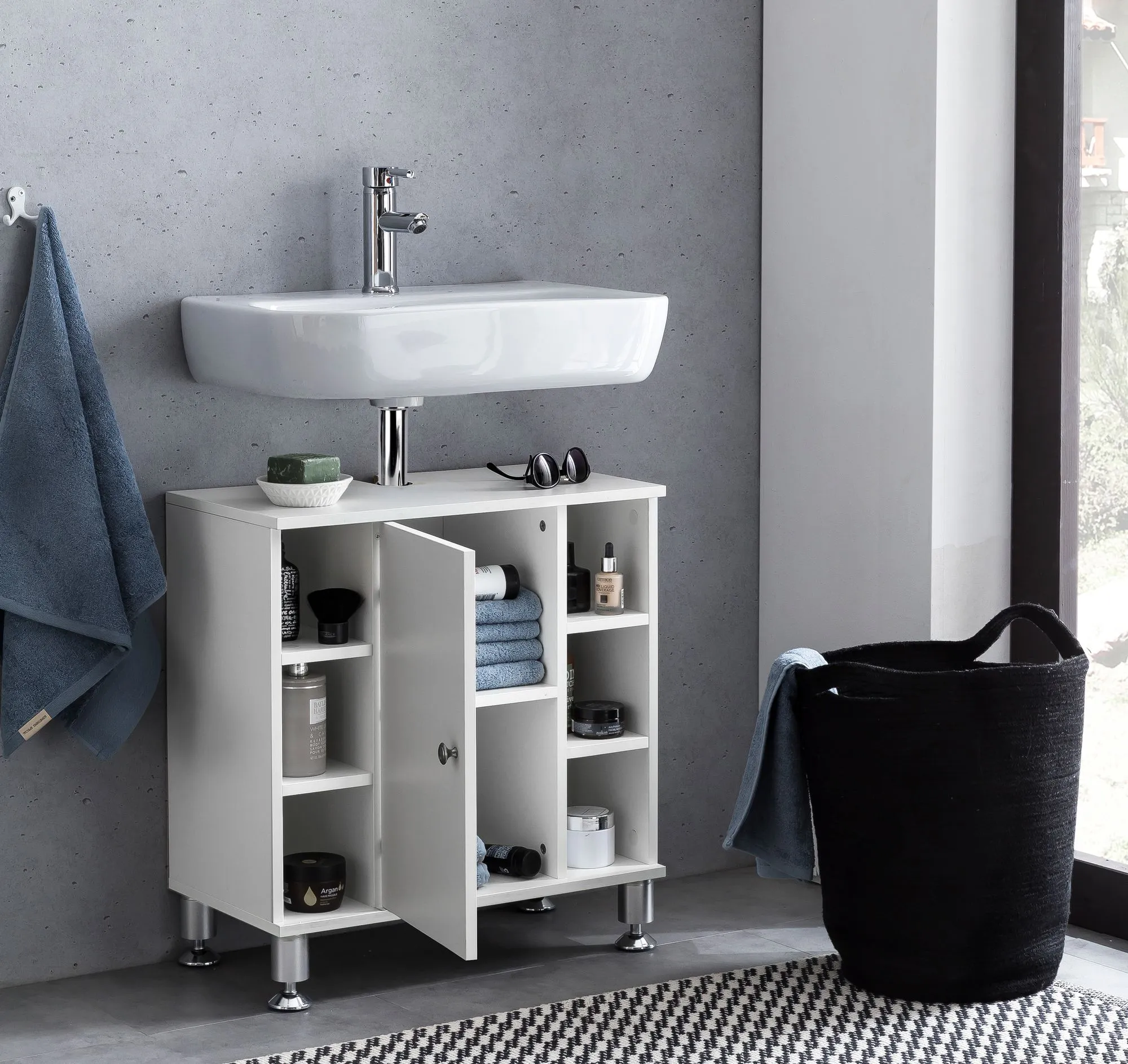 tinkaro Waschbeckenunterschrank eckig BLEROR Badschrank Weiß