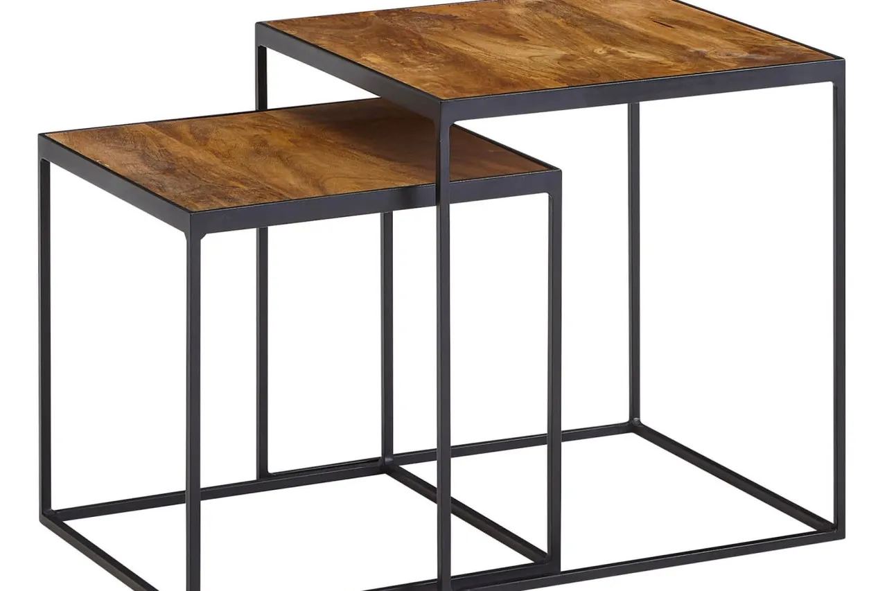 tinkaro eckige Wohnzimmertische 2er-Set ANABELA Mango Massivholz/Metall 013405 Beistelltische Couchtische Braun