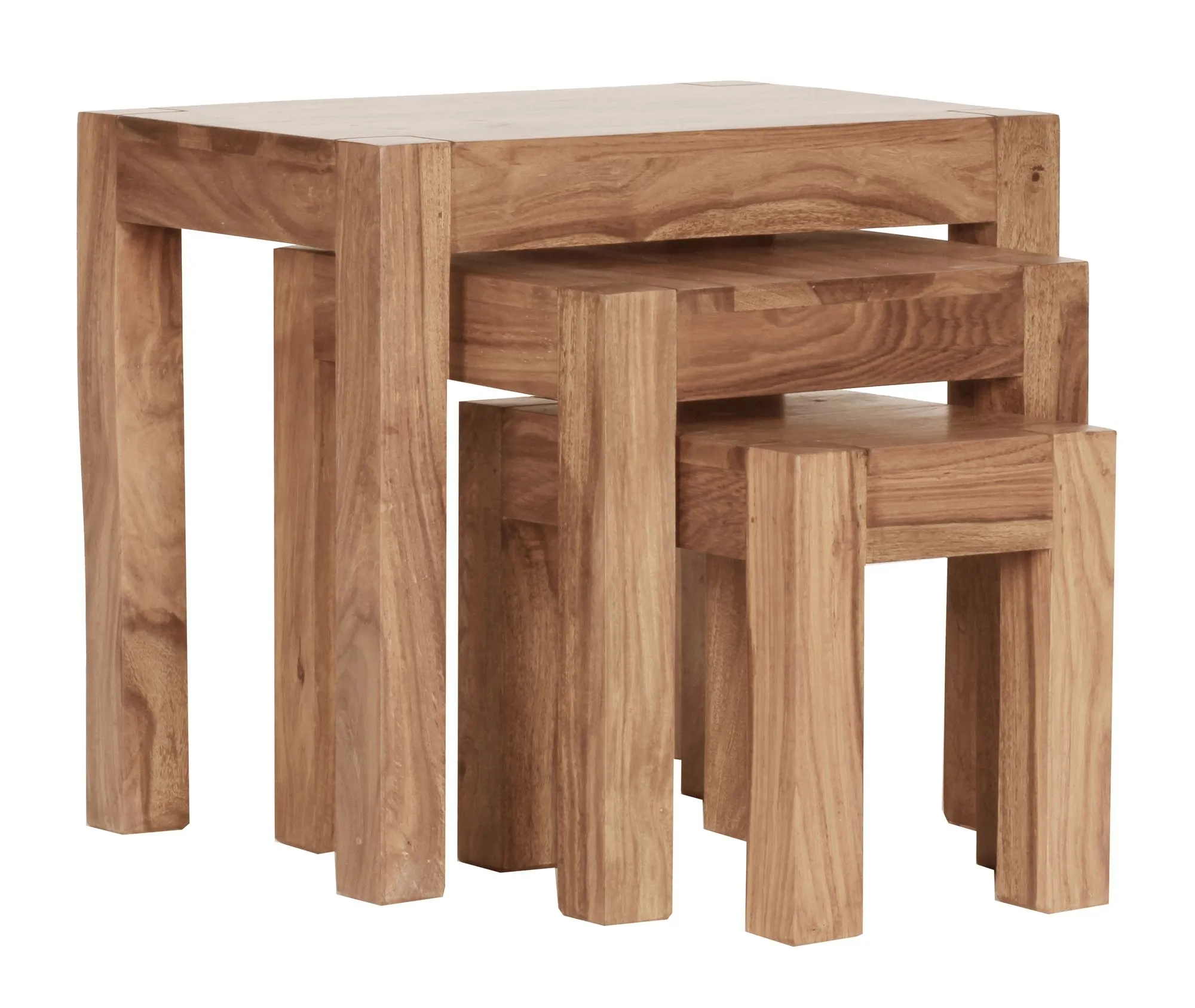 tinkaro Wohnzimmertisch 3er-Set eckig ANUSCHKA Massiv-Holz Akazie Beistelltisch Braun