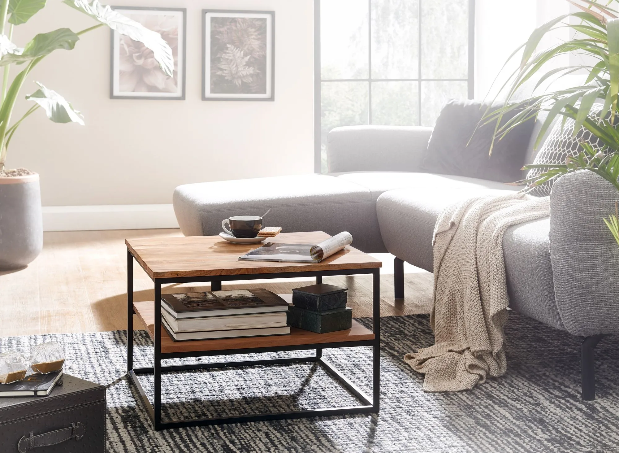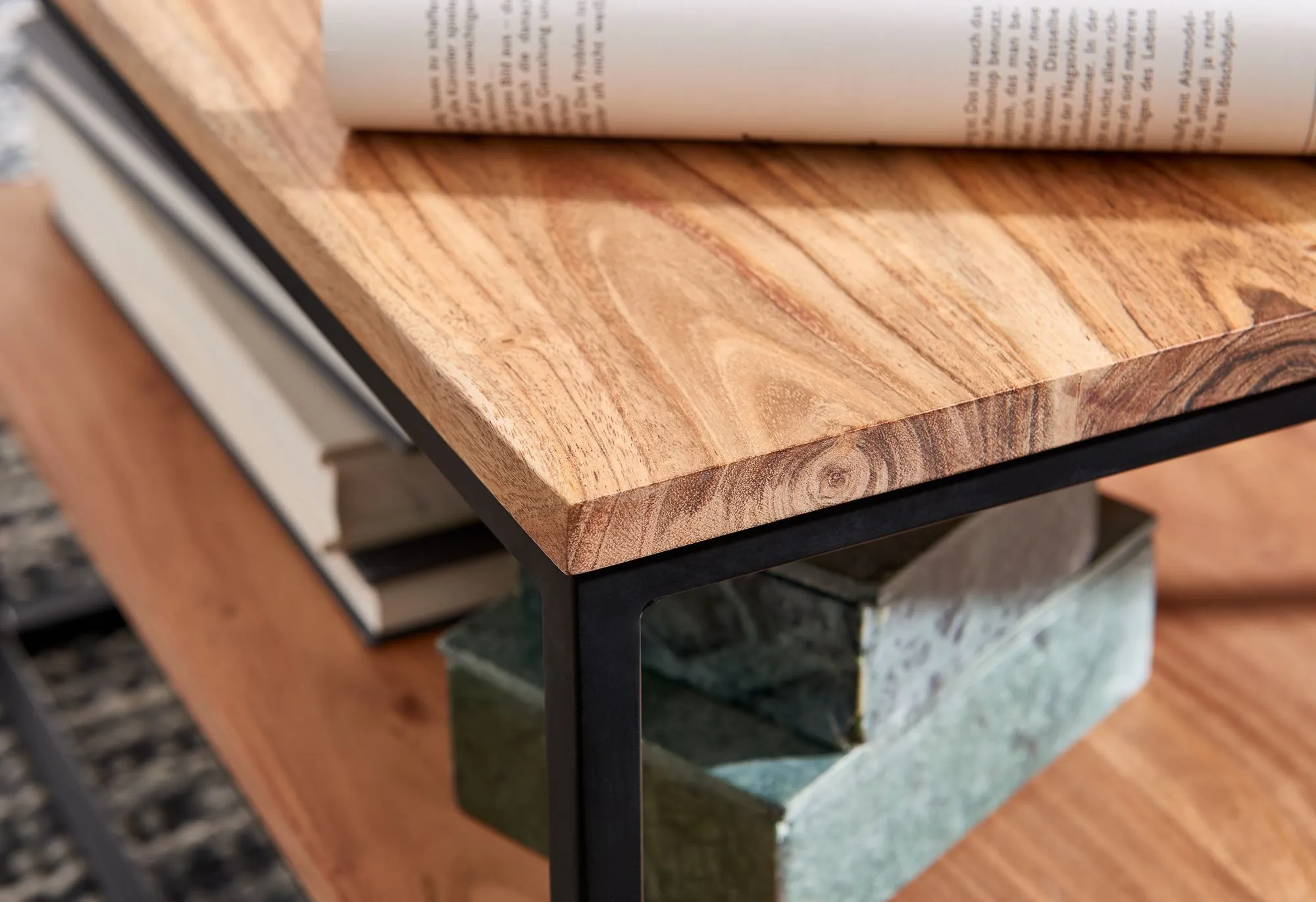 tinkaro Wohnzimmertisch eckig BASCHA Akazie Massivholz Sofatisch Braun
