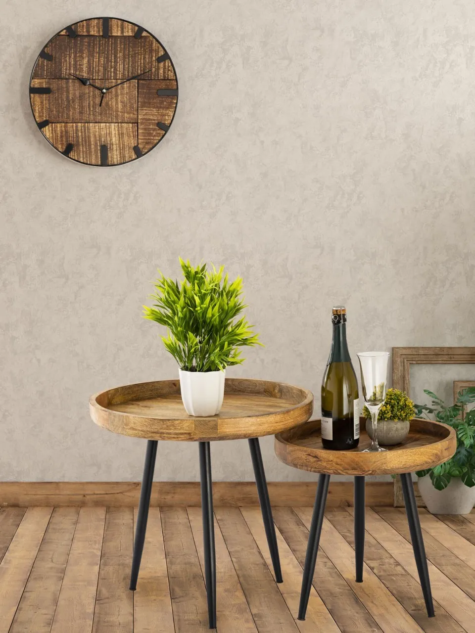 tinkaro Wohnzimmertisch rund ERZEN Mango Altholz/Metall Couchtisch Braun/Schwarz
