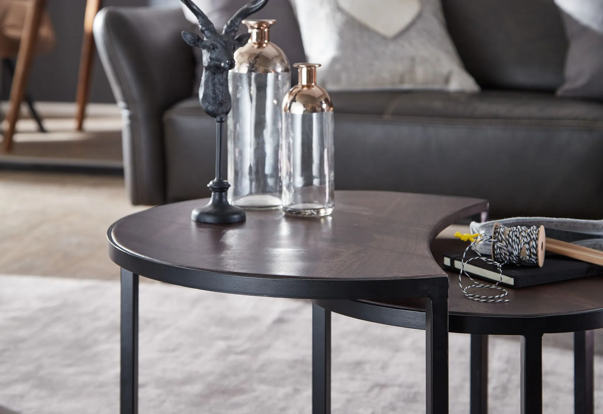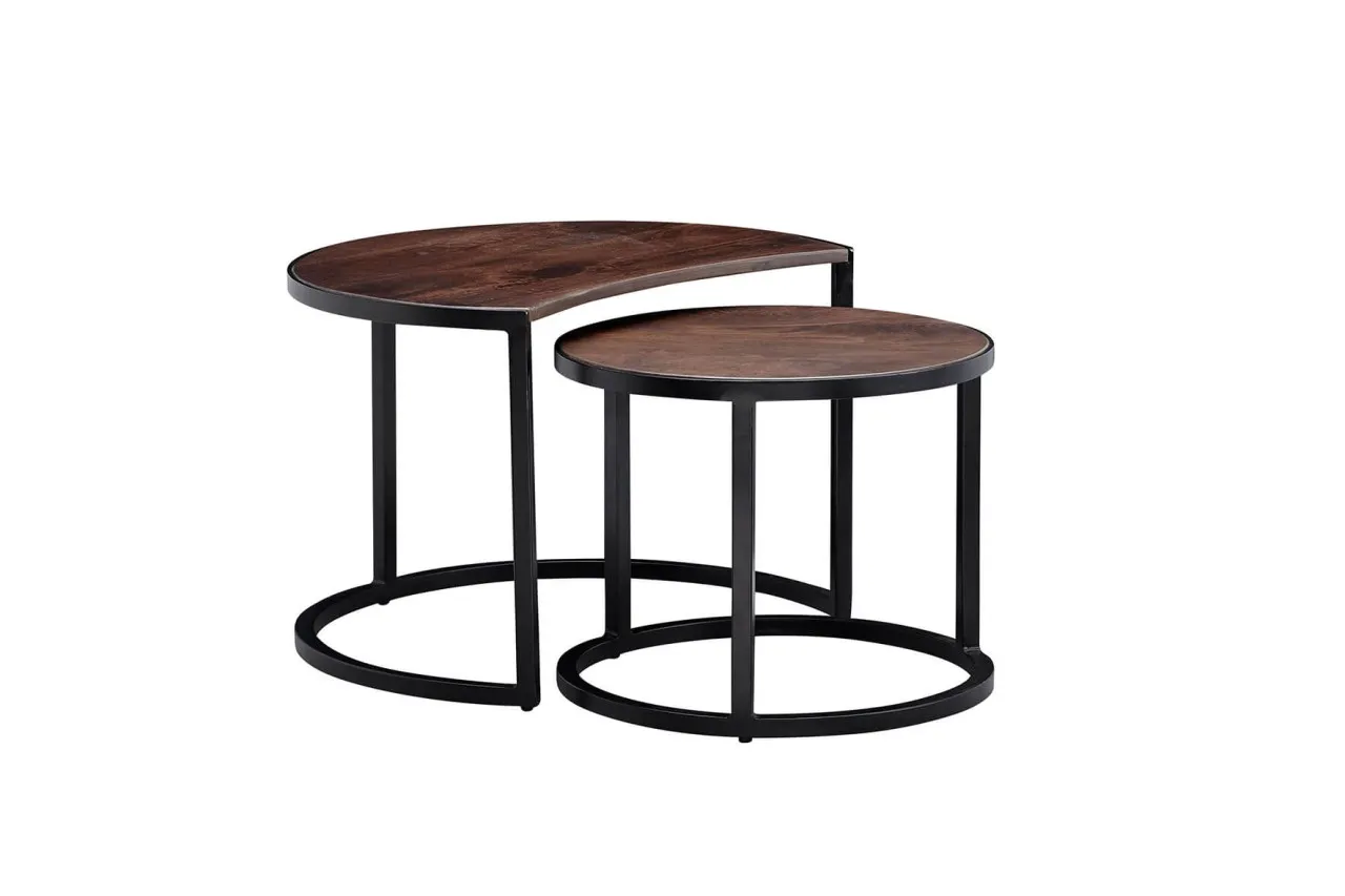 tinkaro Wohnzimmertische 2er-Set rund BEDRETTIN Mango Massivholz Sofatisch Braun