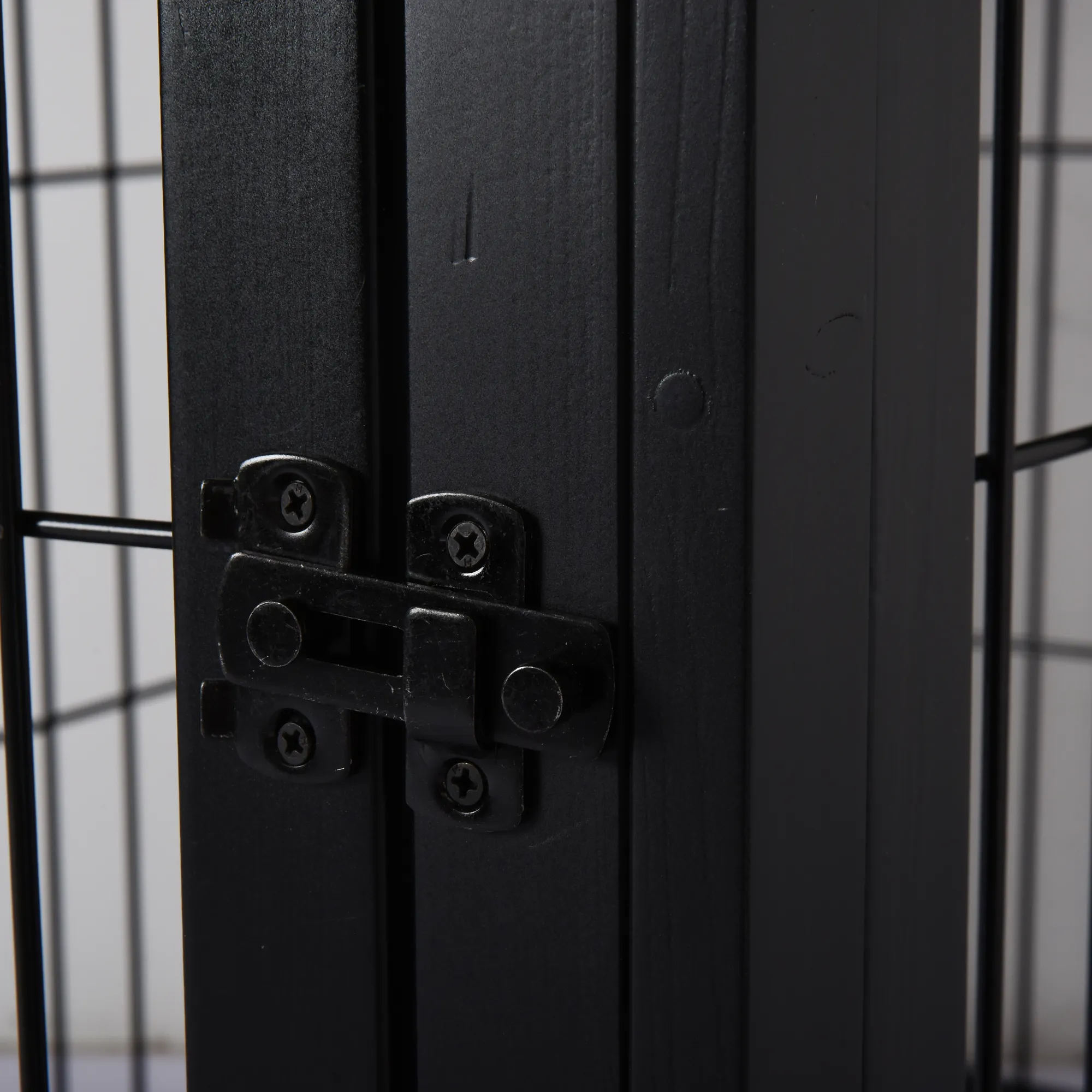 - Modernes Design des Hundekäfigs: Schwarze Verschlüsse und gewölbte Fensterform an den Seitenwänden