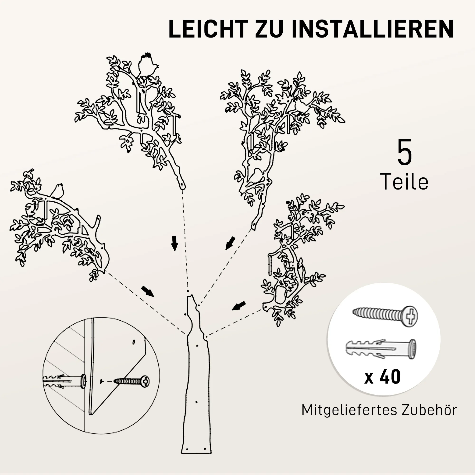 - Einfach zu montieren mit mitgeliefertem Zubehör