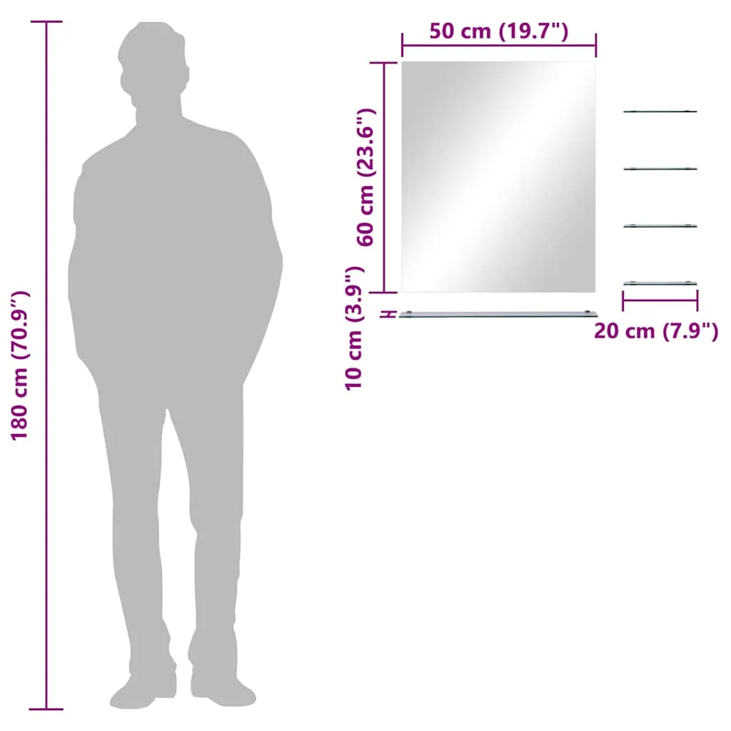 Der Wandspiegel mit Regalen ist elegant gestaltet. Er ist eine praktische und zugleich dekorative Ergänzung für Ihr Badezimmer, Wohnzimmer oder Schlafzimmer. Dieses aus hochwertigem Hartglas gefertigte Badmöbel ist langlebig und leicht zu reinigen. Der rechteckige, gerahmte Spiegel im minimalen und zeitgenössischen Design wertet jeden Raum auf, während vier kleine Ablagen und eine große Ablage zusätzlichen Stauraum bieten. So lassen sich Dekoartikel und Notwendiges übersichtlich und ordentlich aufbewahren. Dieser Spiegel ist einfach zu montieren.