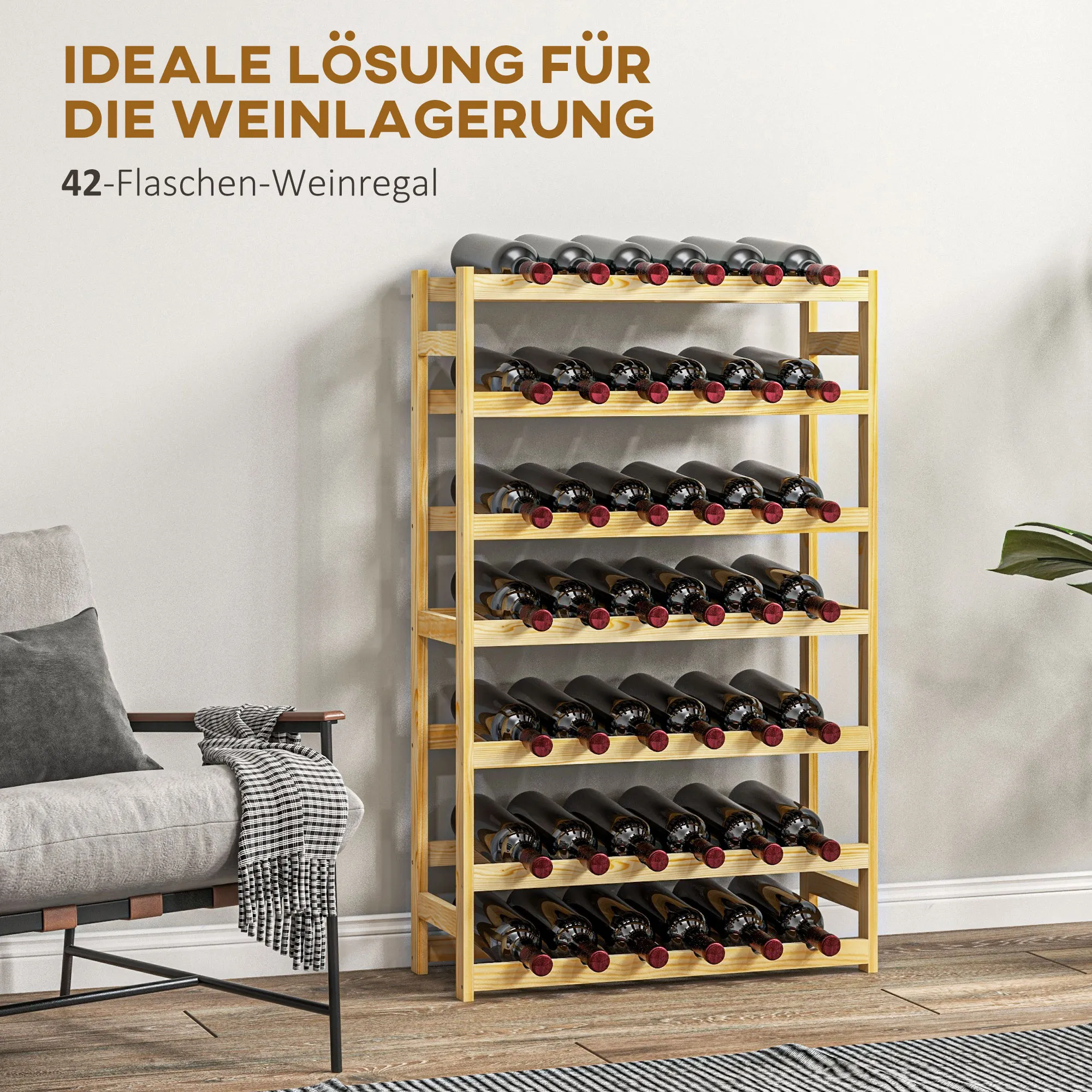 Weinregal, 7 Etagen, für 42 Flaschen, Kippschutz, Kiefernholz, 63x25x102cm, Natur