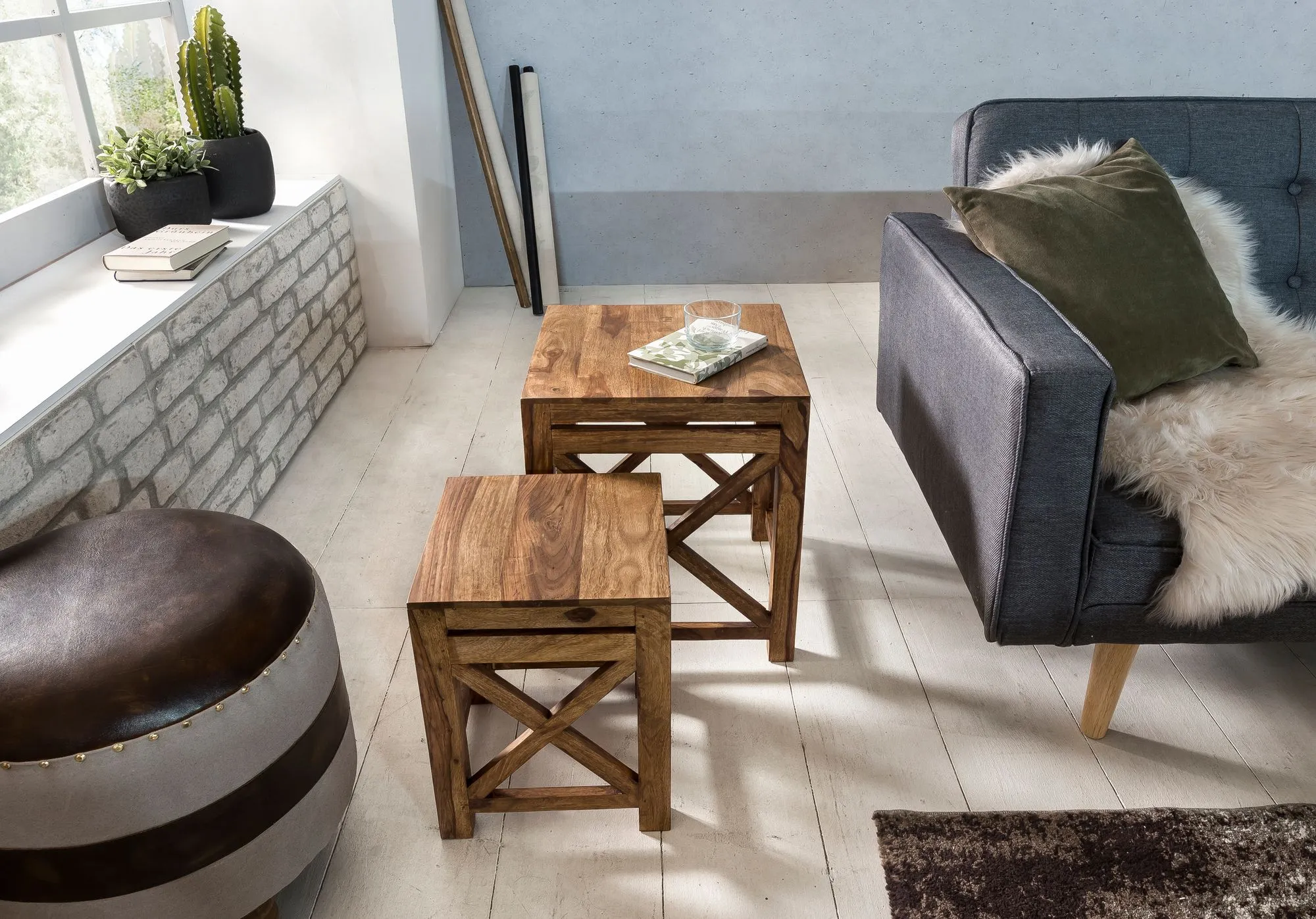 WOHNLING 2er Set Beistelltisch PALI WL1.561 Massiv-Holz Sheesham Wohnzimmer-Tisch