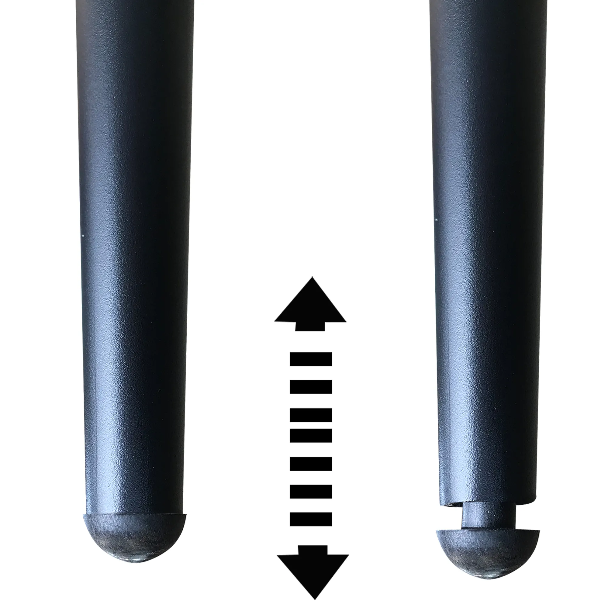 - Kunststoffkappen an der Unterseite der Beine verhindern ein Quietschen oder Kratzen auf Ihrem Boden