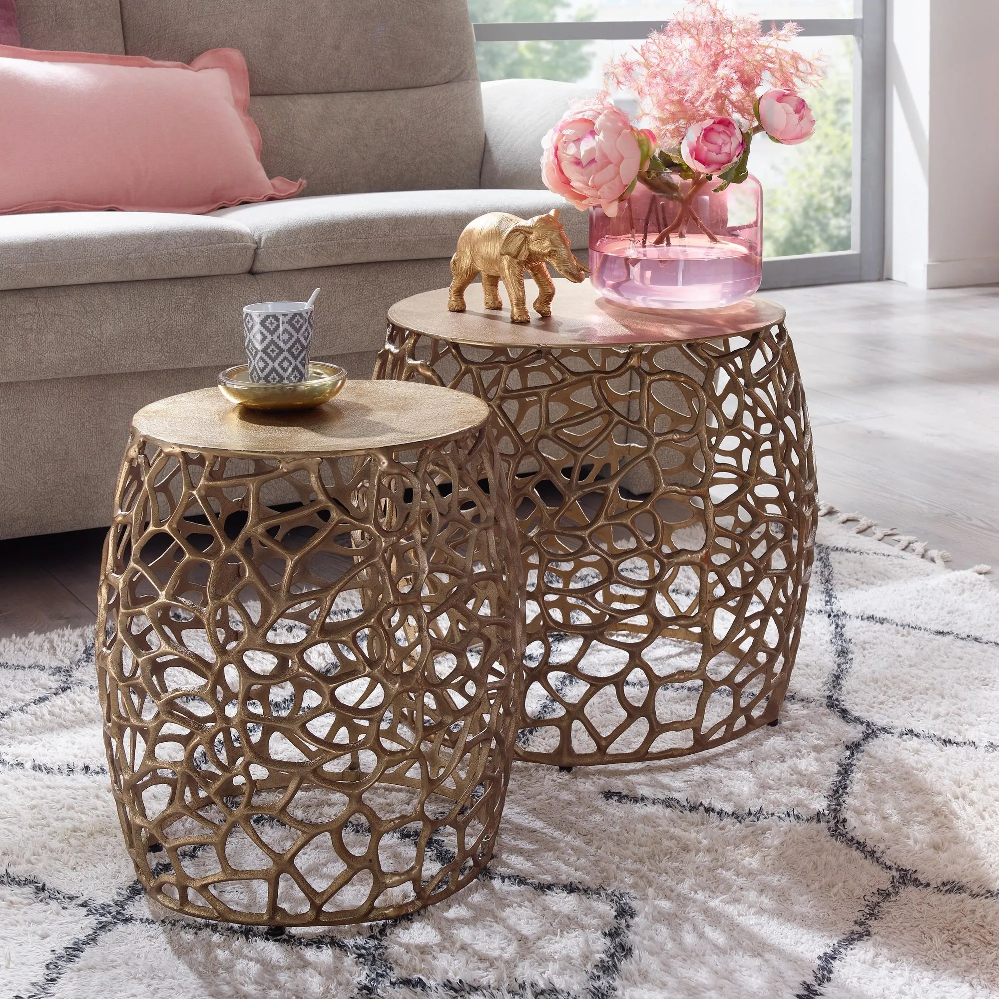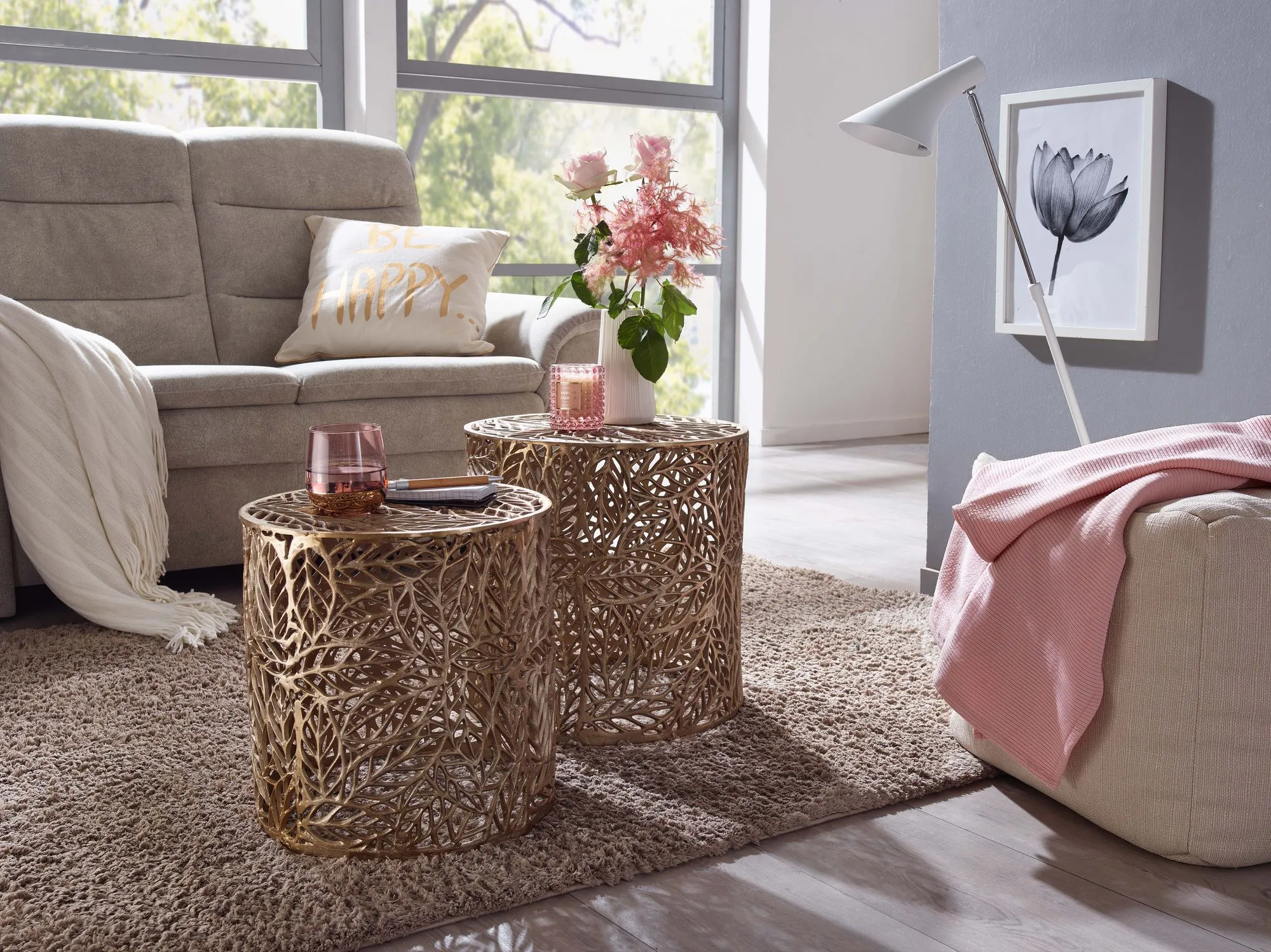 Wohnling Beistelltisch 2er Set Aluminium Gold Design Satztisch Metall Rund