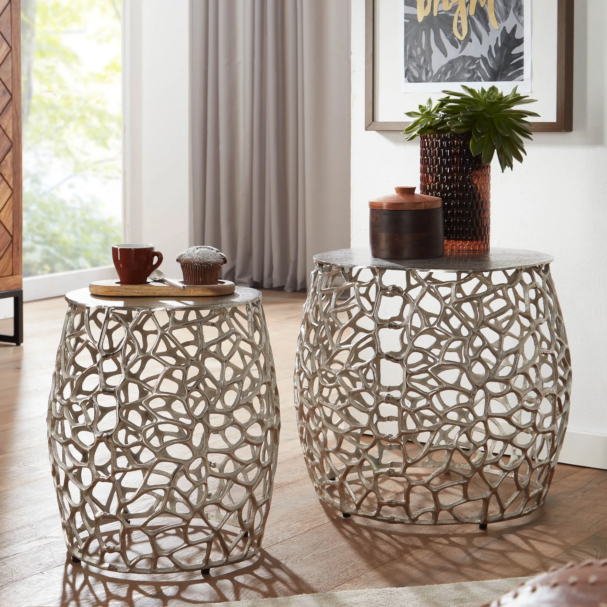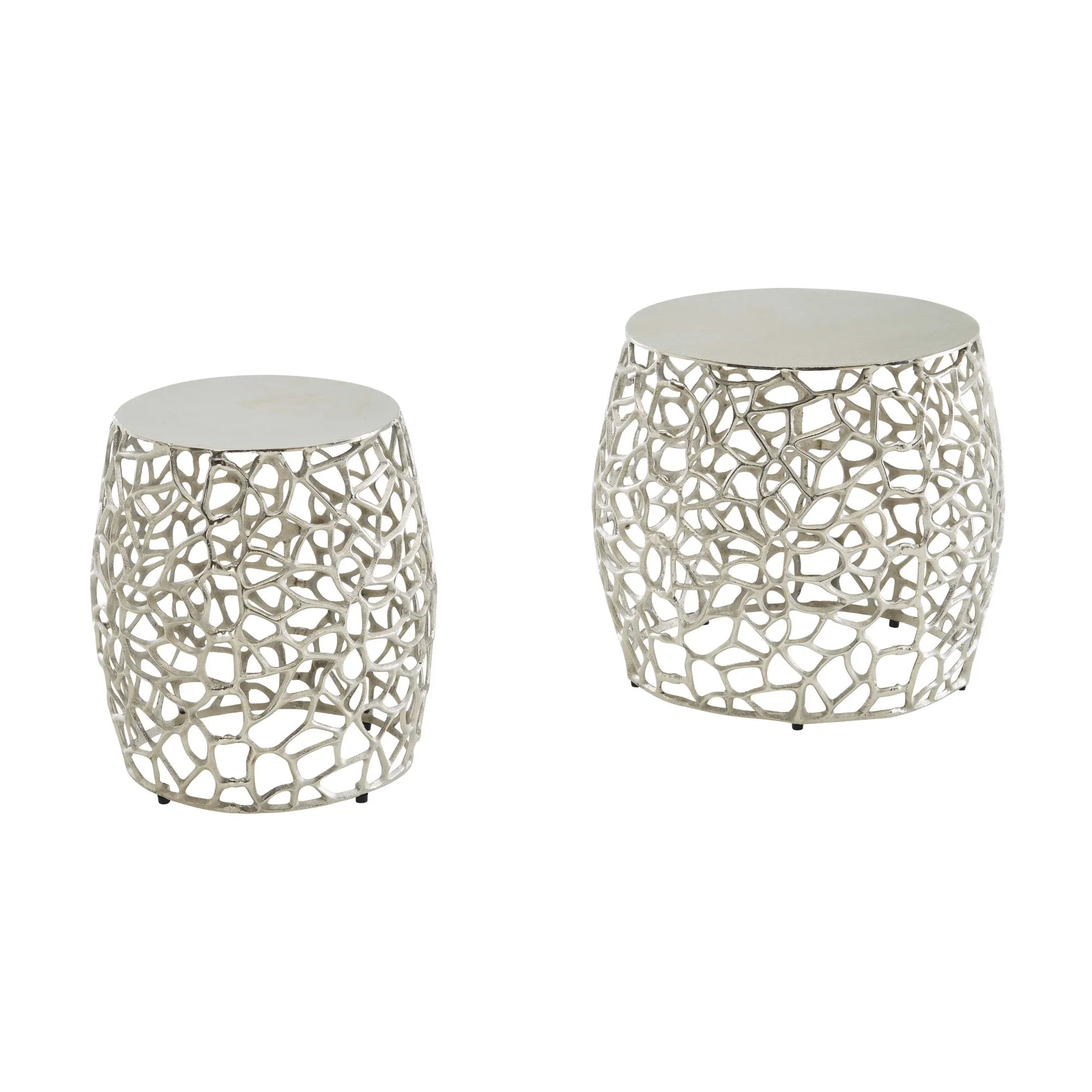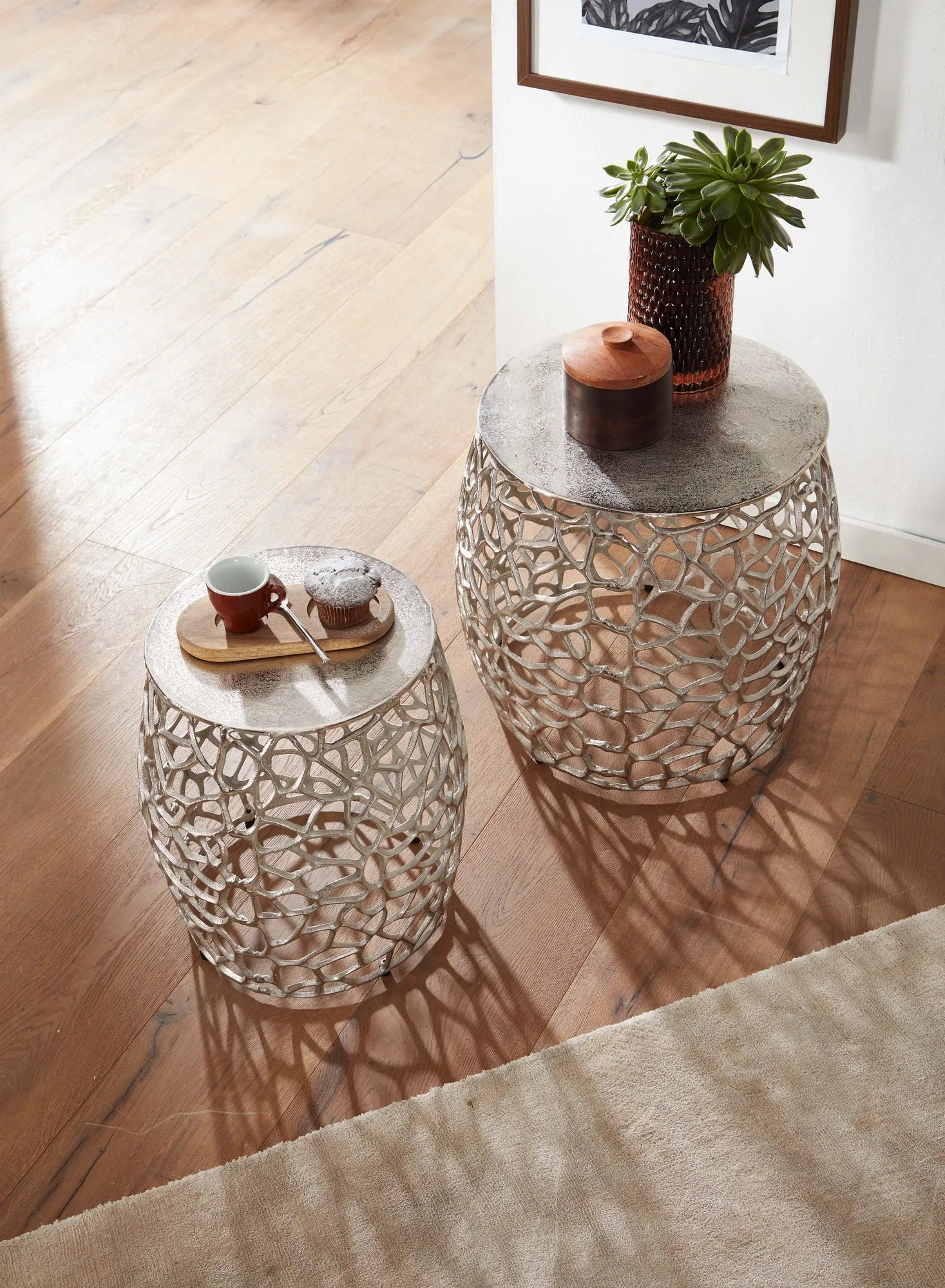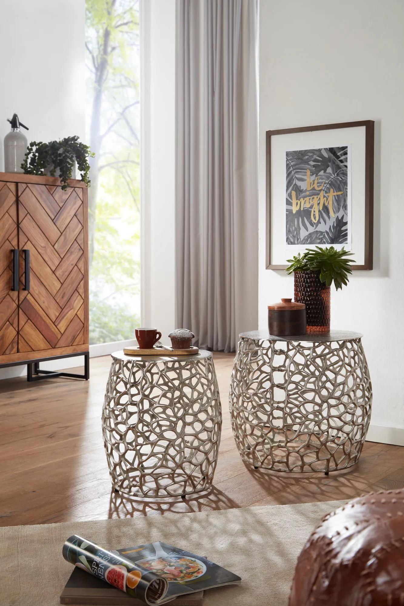 Wohnling Beistelltisch 2er Set Aluminium Silber Design Satztisch Metall Rund