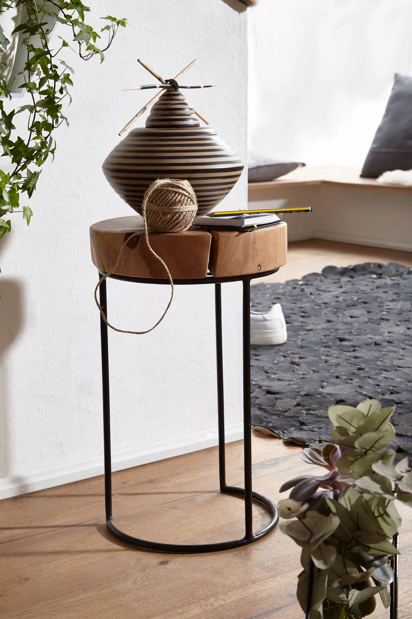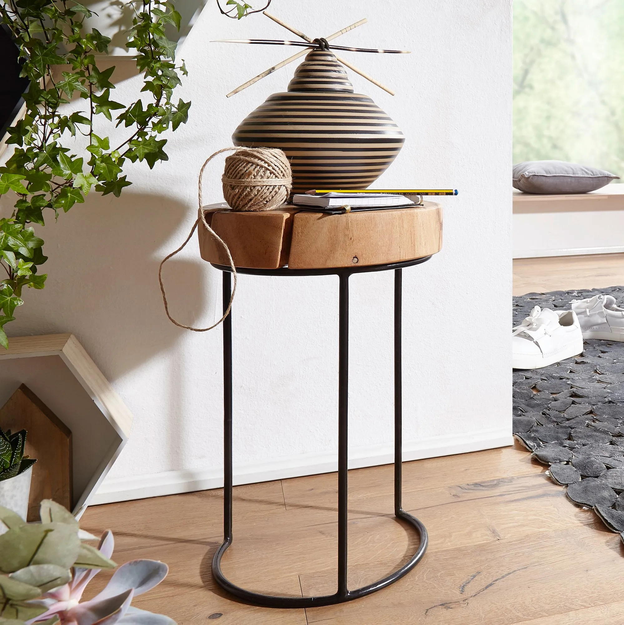 Wofür geeignet? Der Beistelltisch eignet sich ideal als kleiner Eck-Tisch - Optisches Highlight ist die Tischplatte in Baumstammform