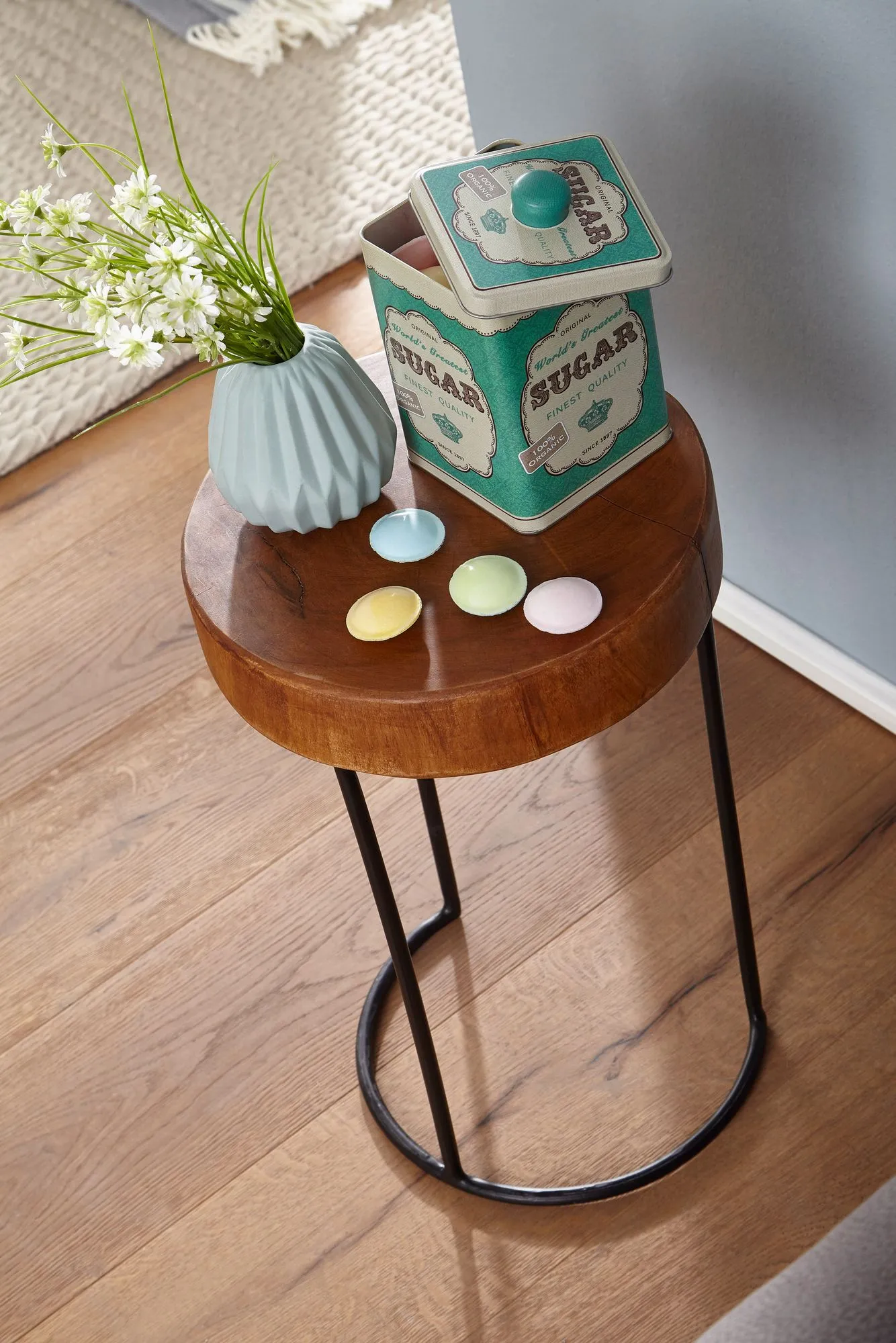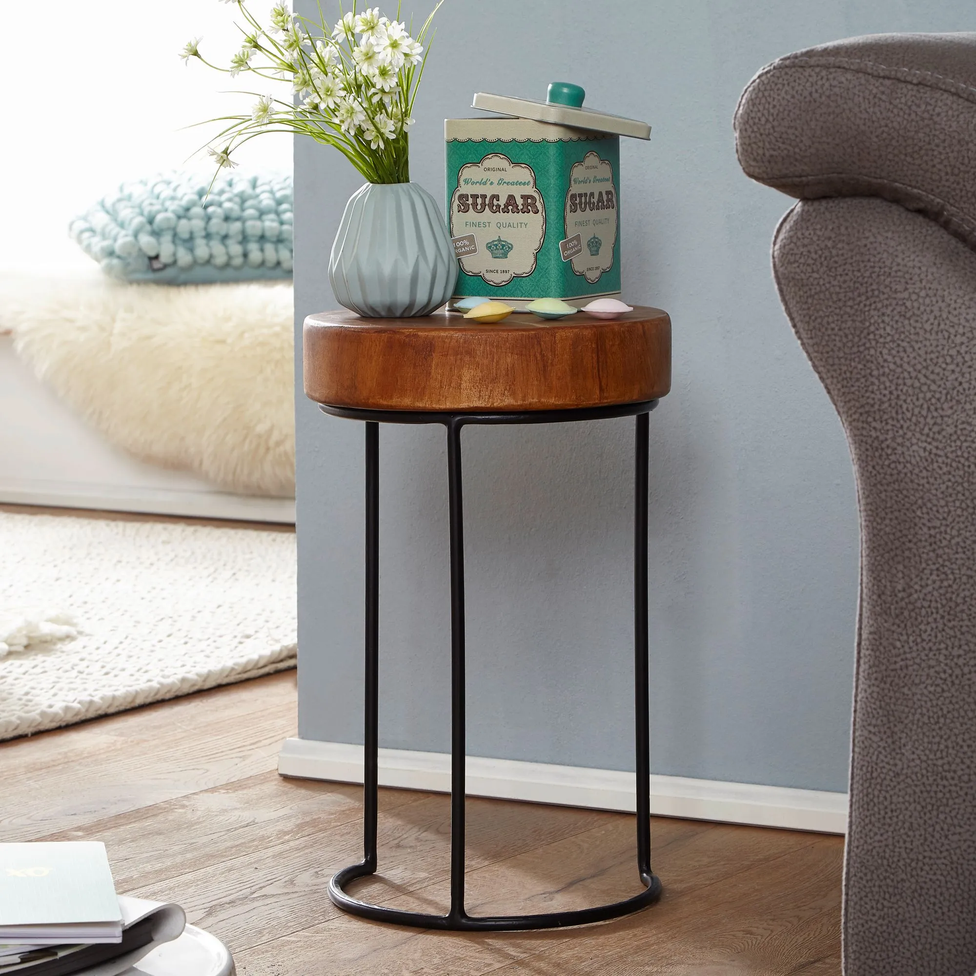 Wohnling Beistelltisch AKOLA Massiv-Holz Sheesham Wohnzimmer-Tisch Metallbeine Landhaus-Stil Baumstamm-Form Echt-Holz Natur