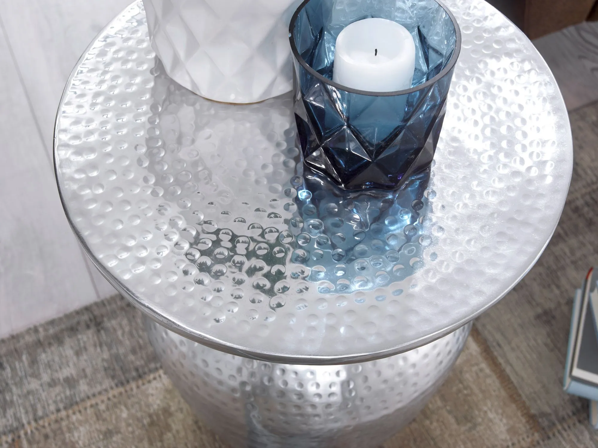 WOHNLING Beistelltisch DELYLA WL5.442 Aluminium 36,5x46x36,5 cm Dekotisch Silber orientalisch rund | Designer Ablagetisch Metall modern | Anstelltisch schmal | Kleiner Hammerschlag Abstelltisch