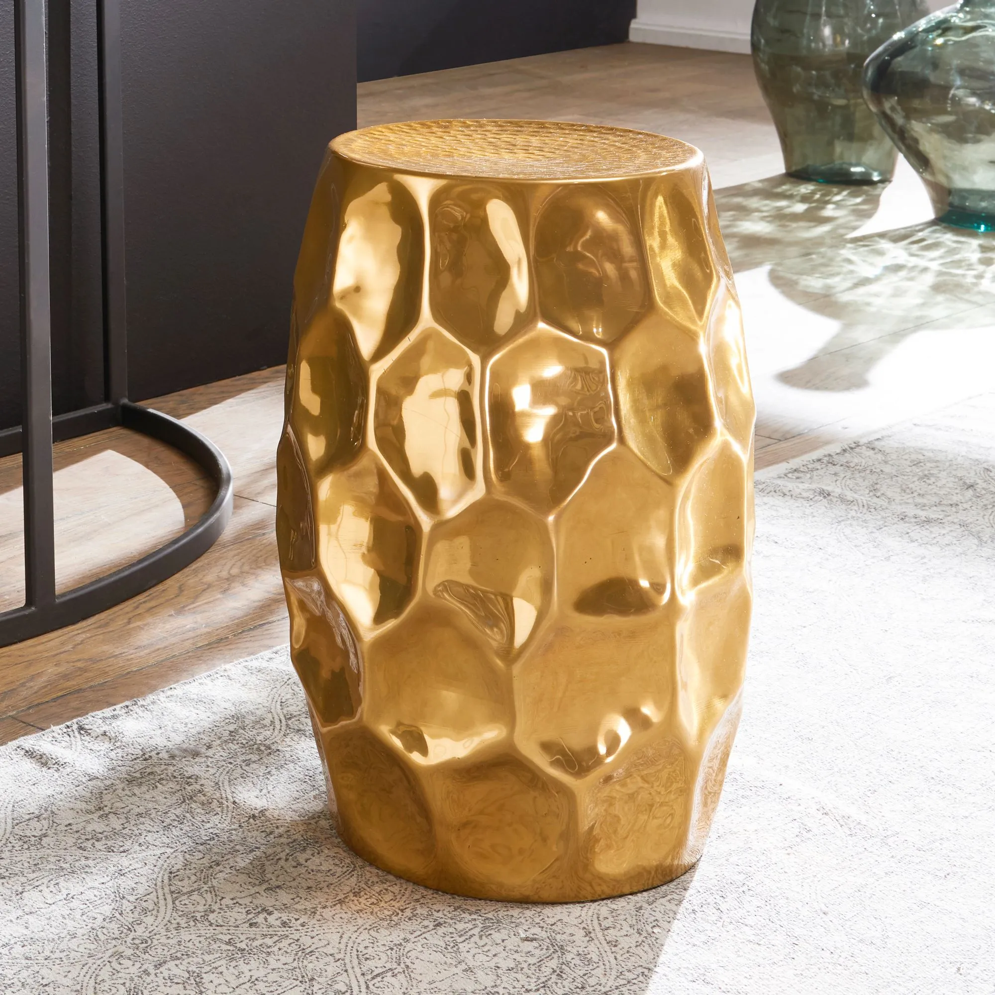 WOHNLING Beistelltisch JADA WL5.477 - 30x47x30cm Aluminium Gold Dekotisch orientalisch rund | Kleiner Hammerschlag Abstelltisch | Designer Ablagetisch Metall modern | Anstelltisch schmal