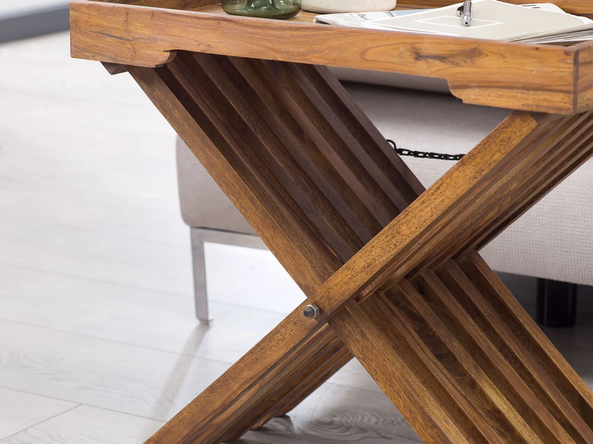 Wohnling Beistelltisch MUMBAI Massivholz Sheesham Design Klapptisch Serviertablett und Tisch-Gestell klappbar Landhaus-Stil