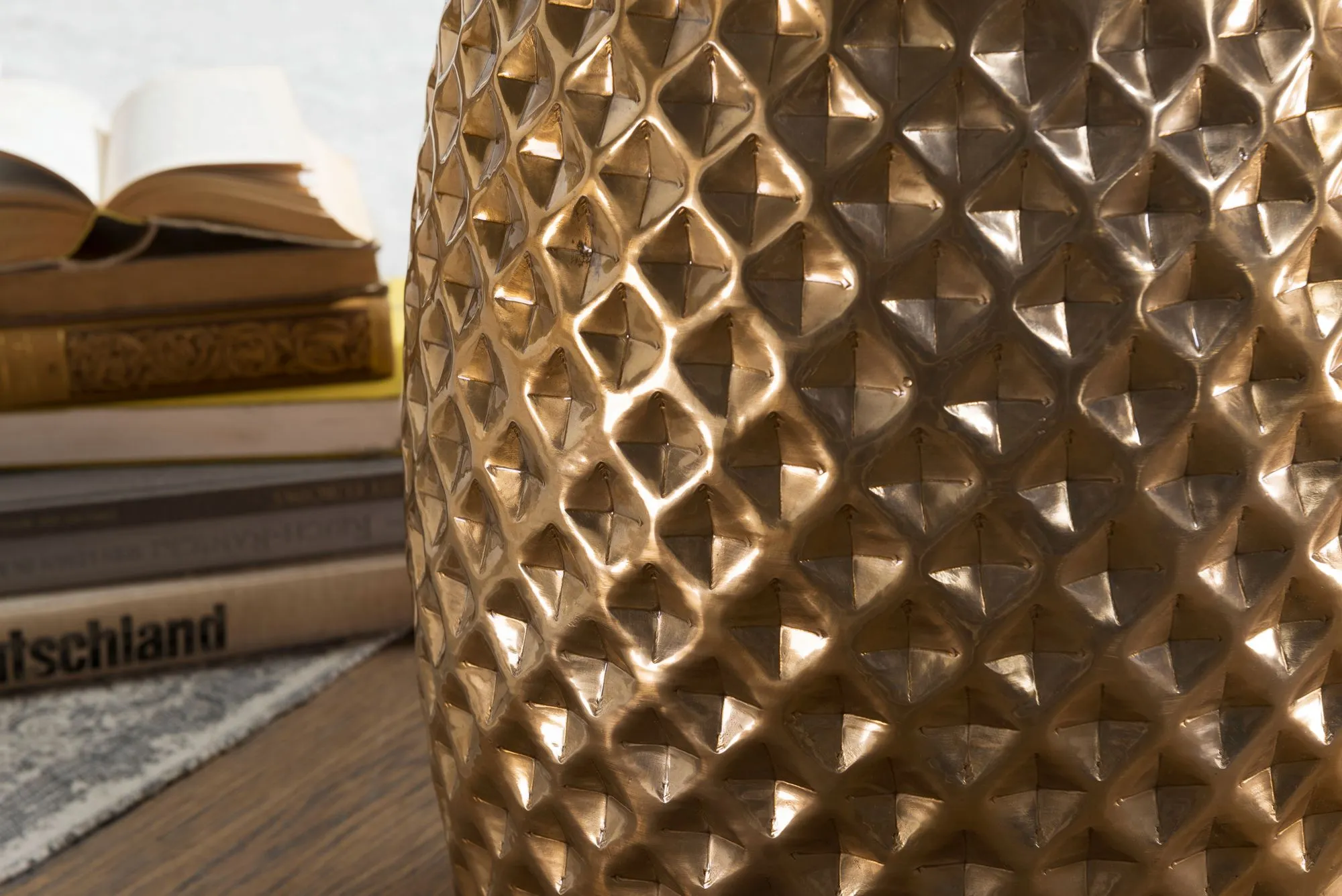 WOHNLING Beistelltisch SITA WL5.450 - 32x42x32 cm Aluminium Anstelltisch Gold Orientalisch Rund | Flacher Hammerschlag Sofatisch Metall | Design Wohnzimmertisch Modern | Ablagetisch Indisch Telefontisch