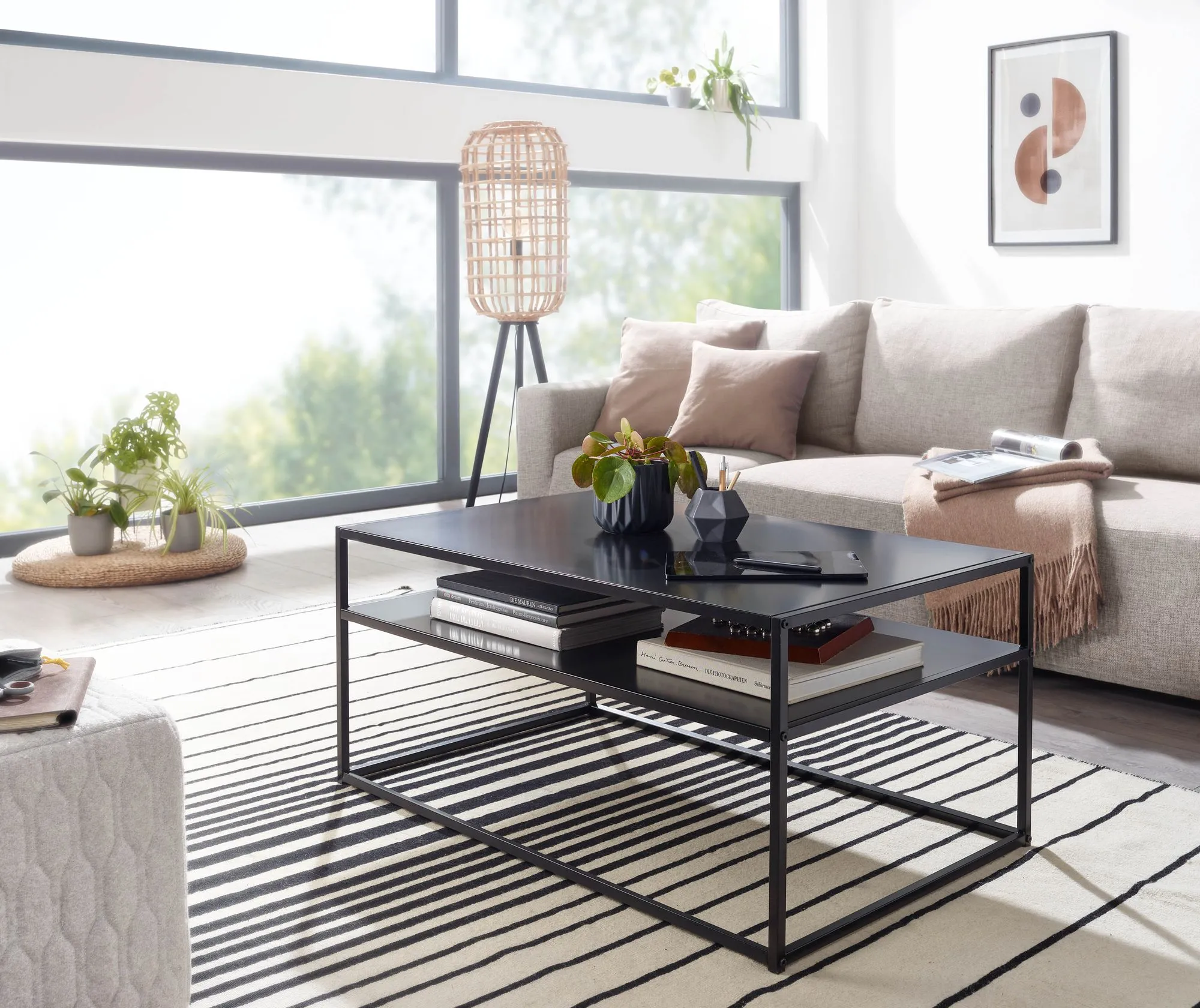 Wohnling Couchtisch 100x60x45 cm Metall Wohnzimmertisch Industrial Schwarz