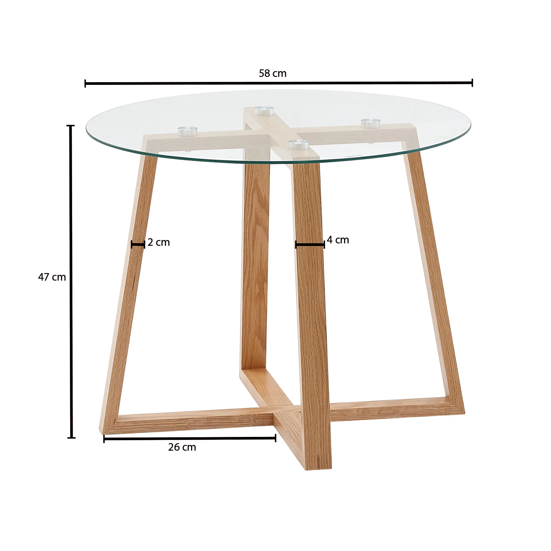 Wohnling Couchtisch 58x58x47 cm Sofatisch Eiche Massivholz / Glas Rund