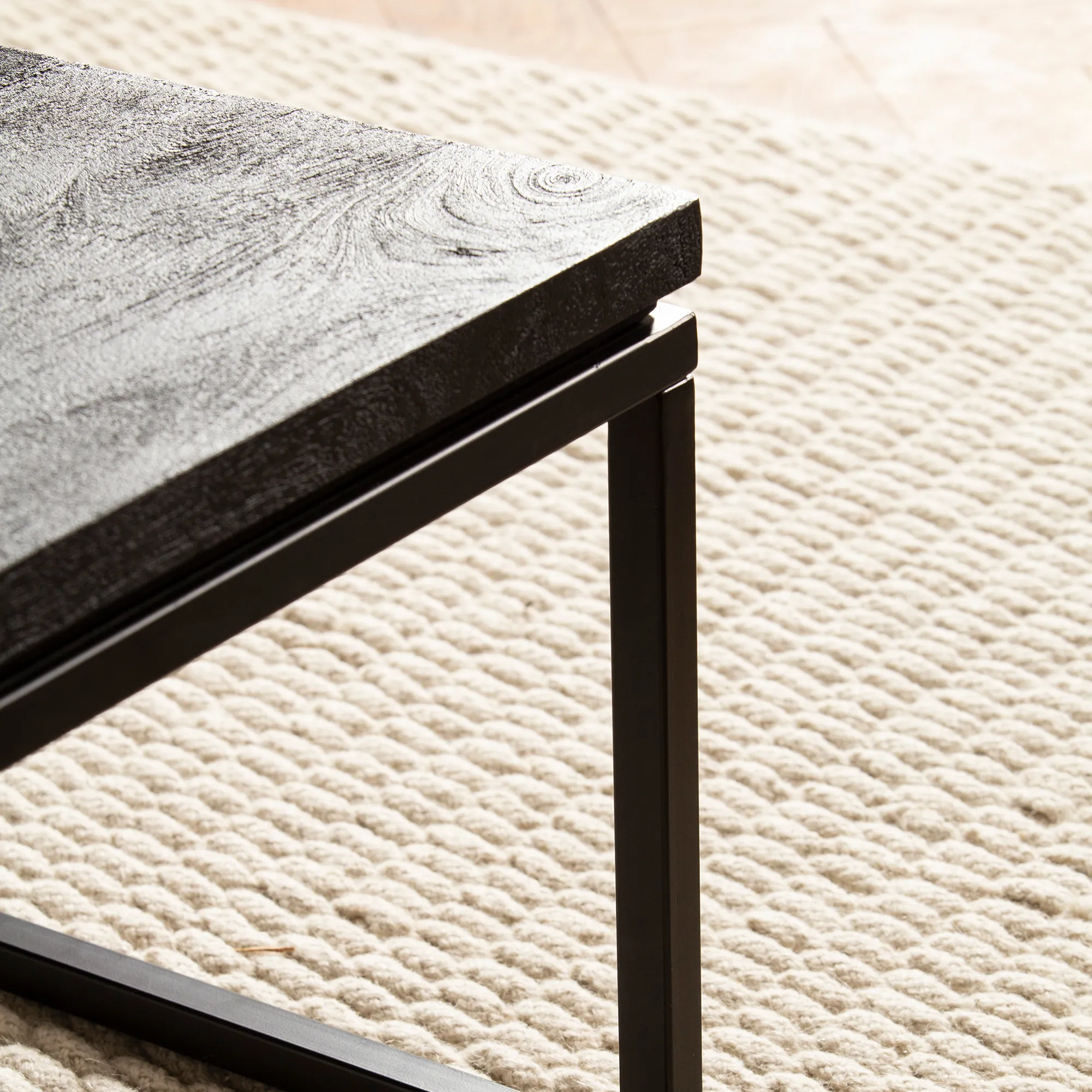 - Tischplatte: Mango Massivholz, schwarz sandgestrahlt