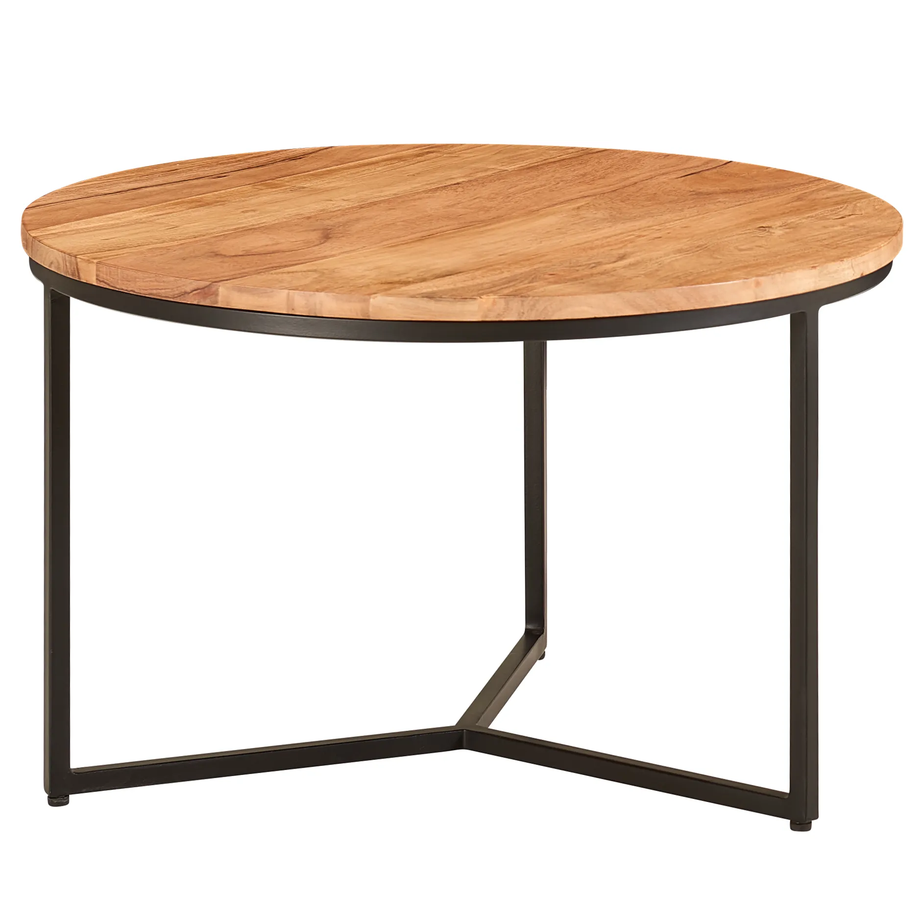 Wohnling Couchtisch 60x60x38 cm Akazie Massivholz / Metall Design Sofatisch Rund