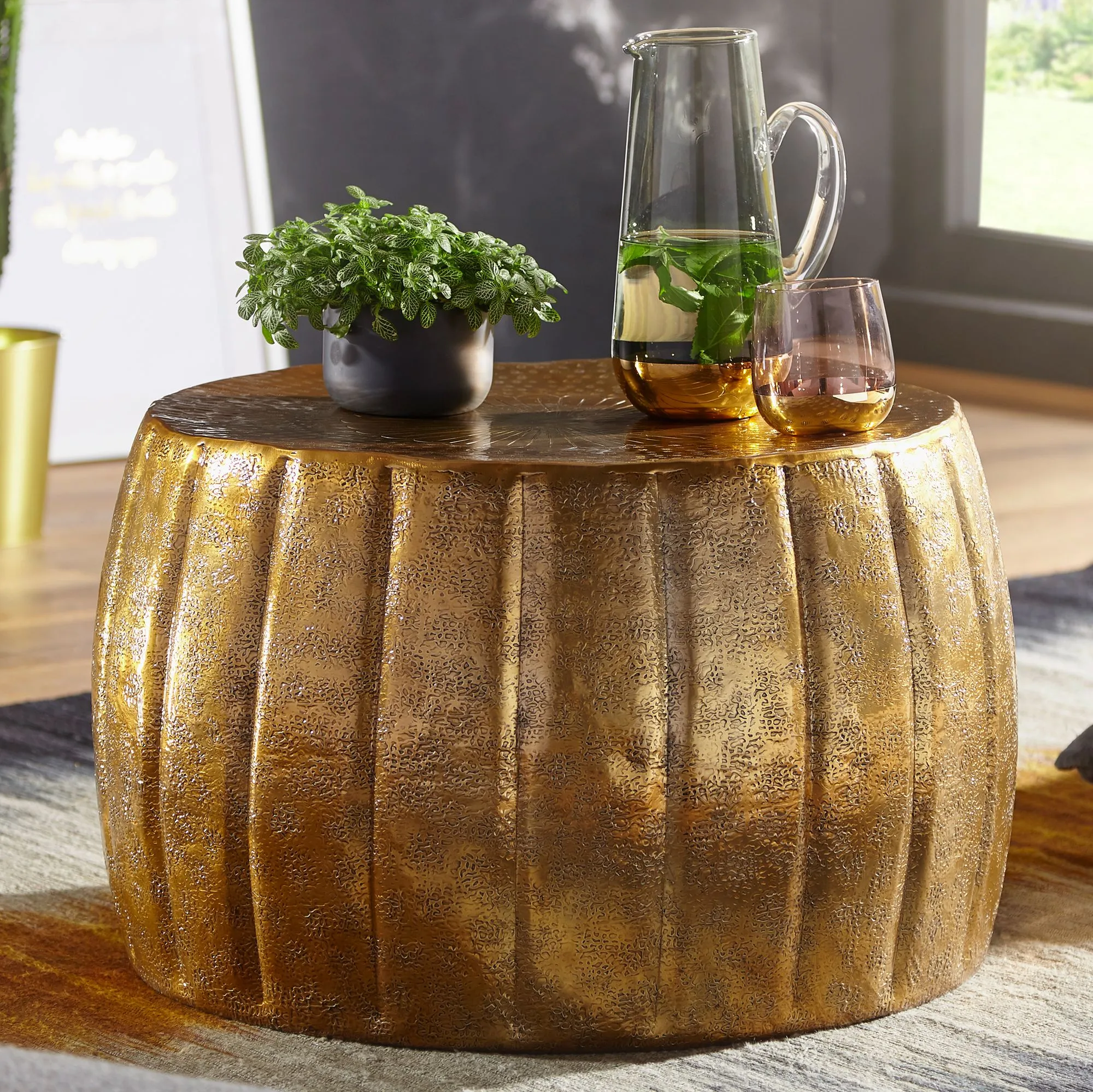 Wohnling Couchtisch 60x36x60 cm Aluminium Gold Beistelltisch orientalisch rund