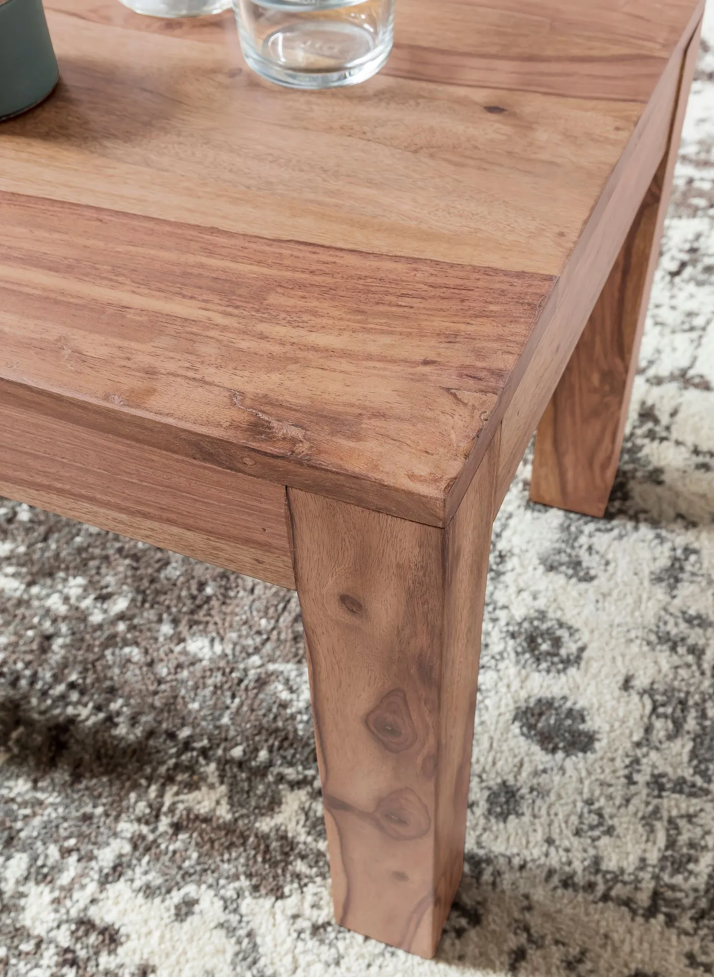 Wohnling Couchtisch Massiv-Holz Akazie 45 cm breit Wohnzimmer-Tisch Design braun Landhaus-Stil Beistelltisch Natur-Produkt Wohnzimmermöbel Unikat modern Massivholzmöbel Echtholz quadratisch