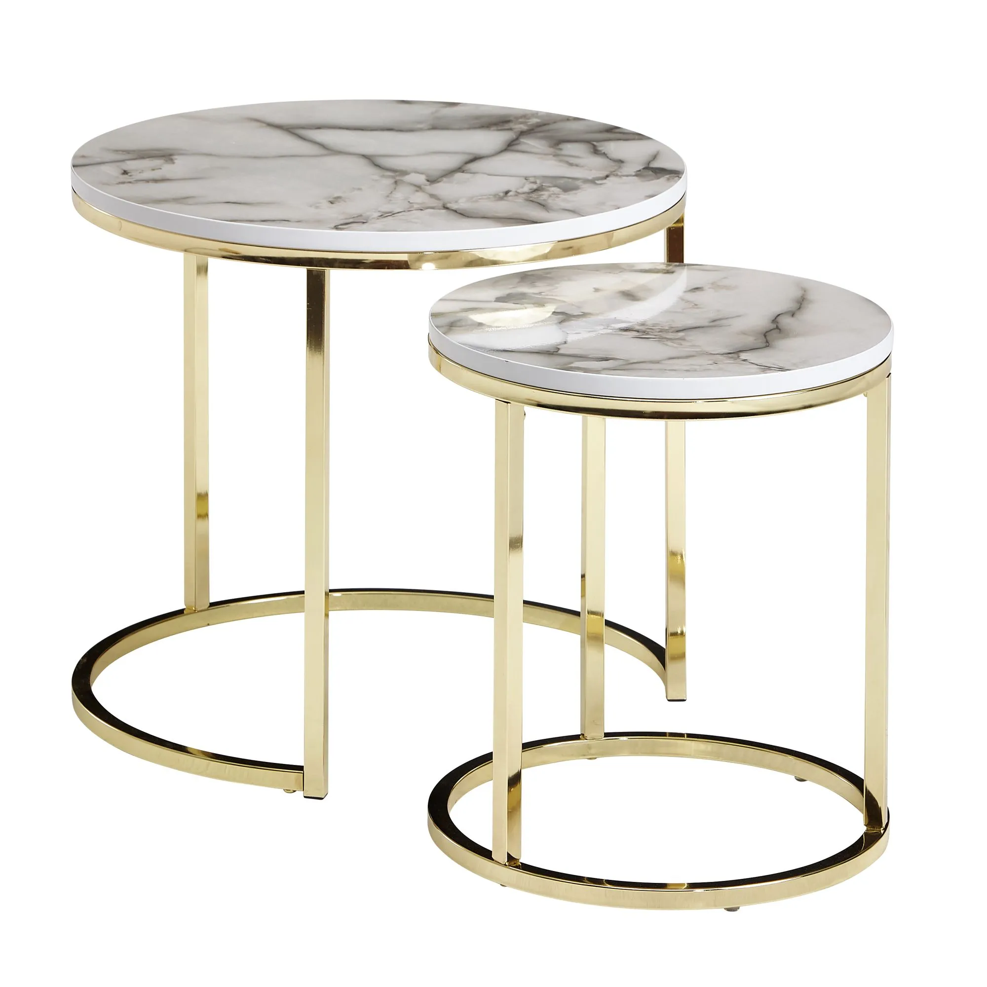 Wohnling Design Beistelltisch 2er Set Weiß Marmor Optik Rund