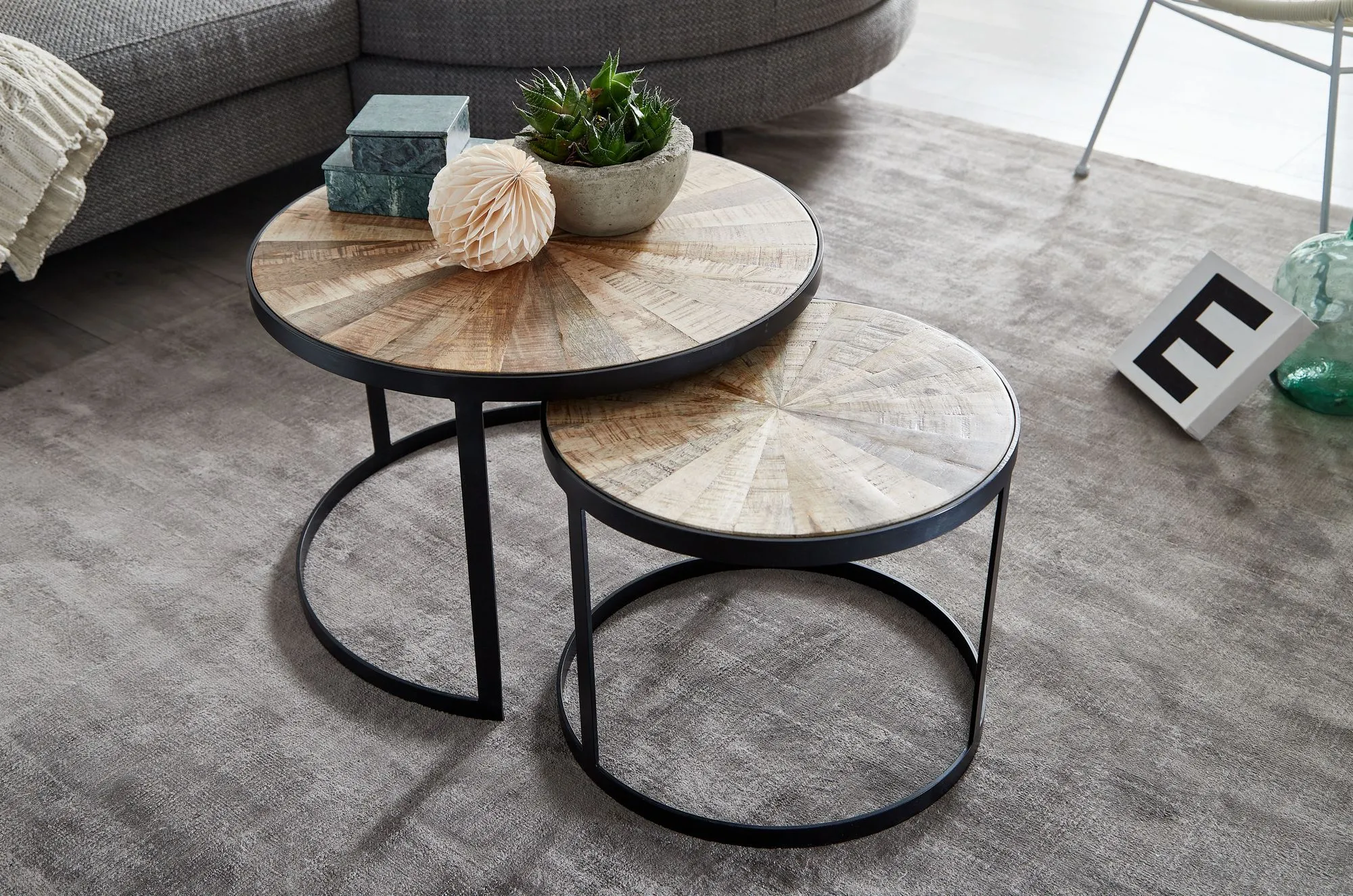 Wohnling Design Couchtisch 2er Set Mango Massivholz Satztisch Rund