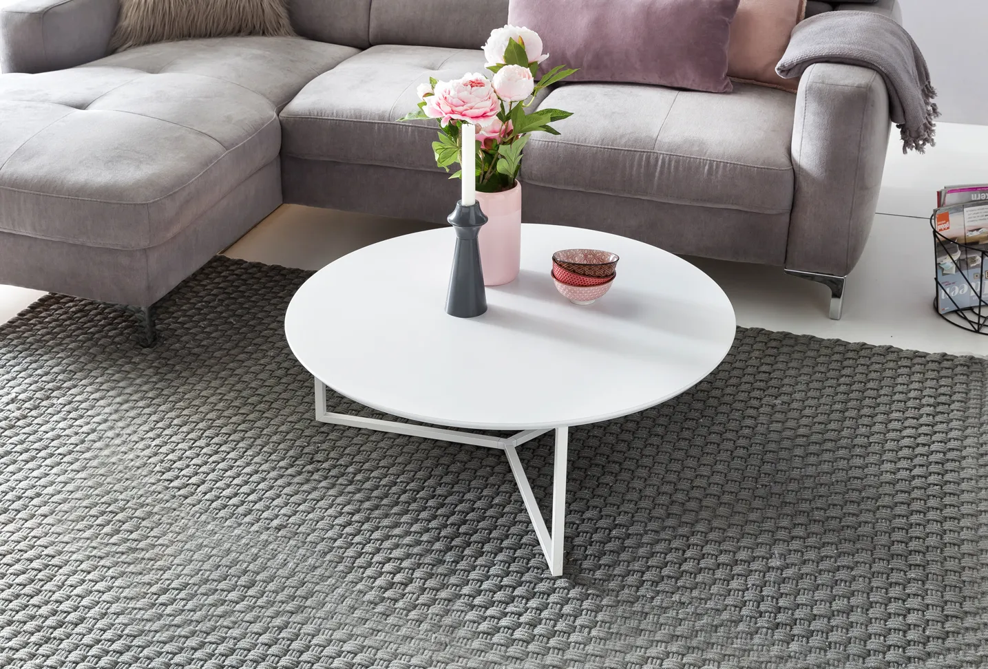 Wohnling Design Couchtisch MDF Holz weiß matt Gestell Metall ø 80 cm