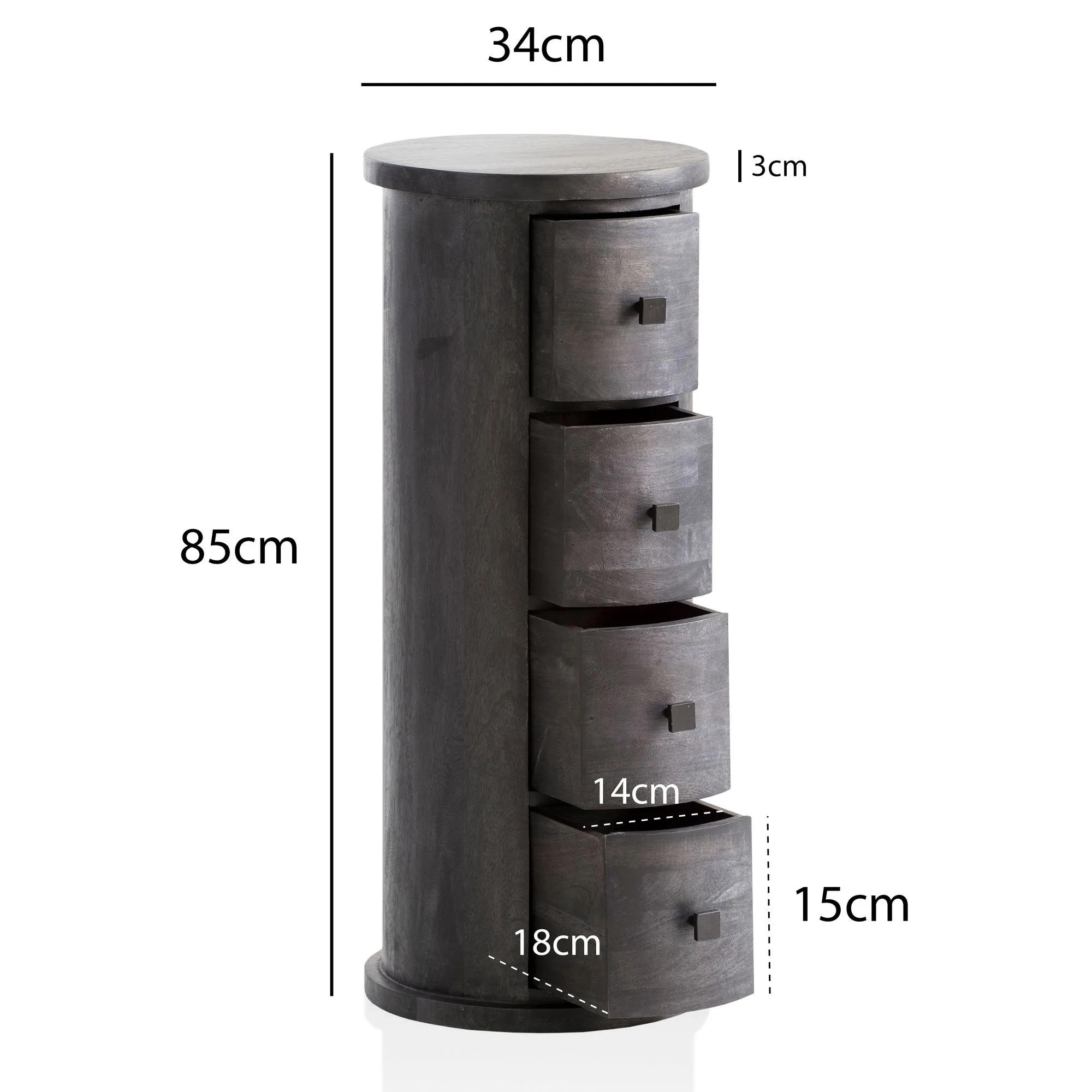 Schmaler Beistellschrank Massiv, Mini Kommode Rund