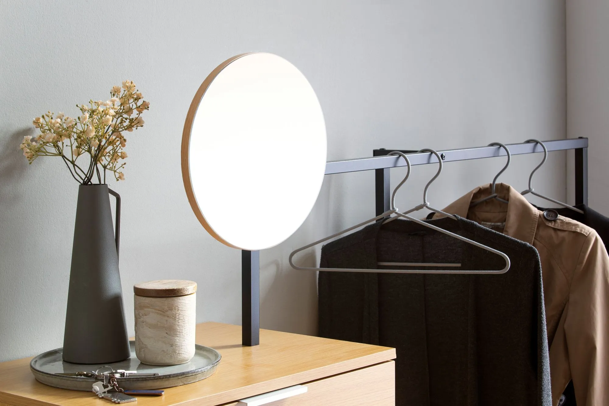 - Runder Spiegel für Blick auf Gesicht und Frisur
