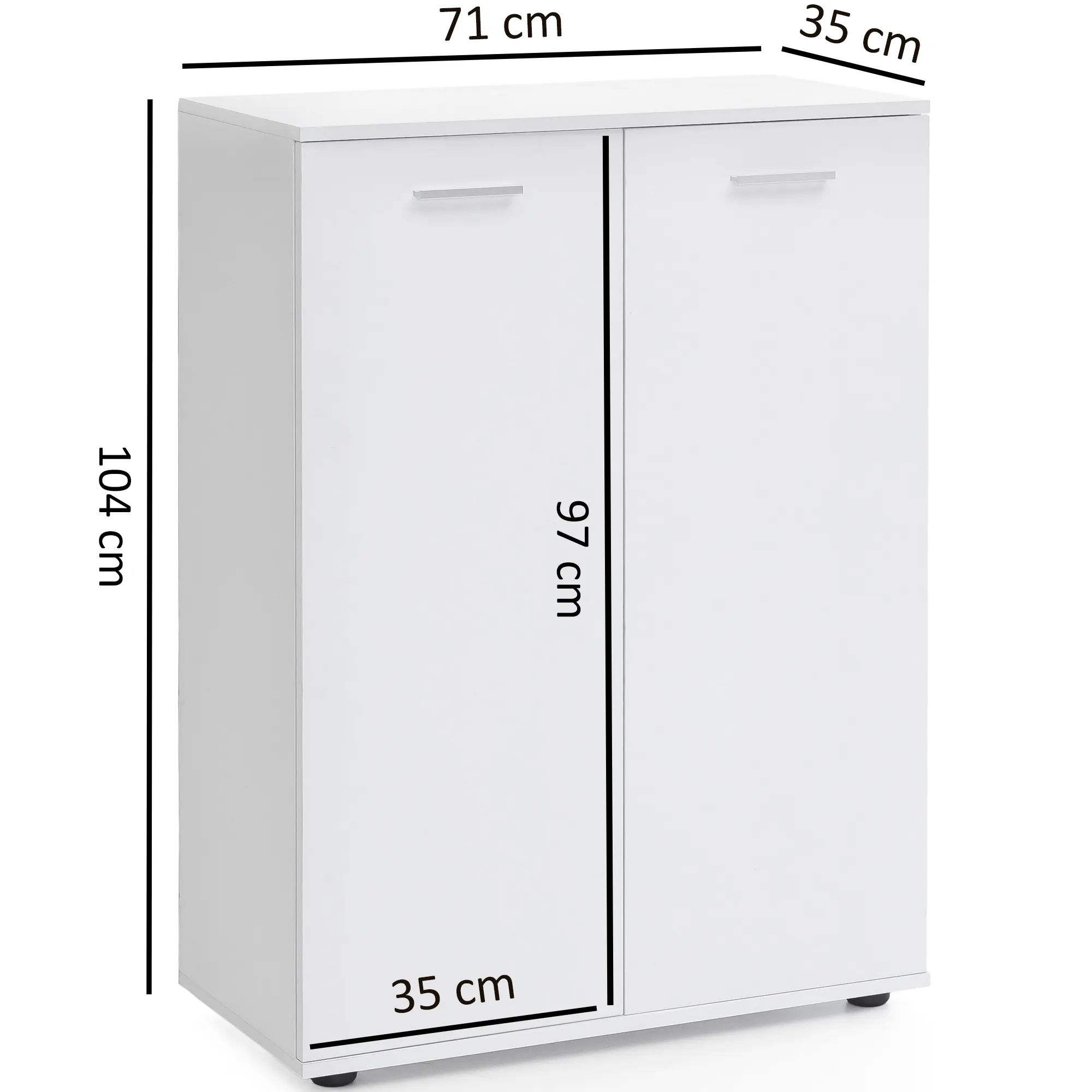 Wohnling Kommode mit 2 Türen 71x104x35cm Mehrzweckschrank Holz Weiß