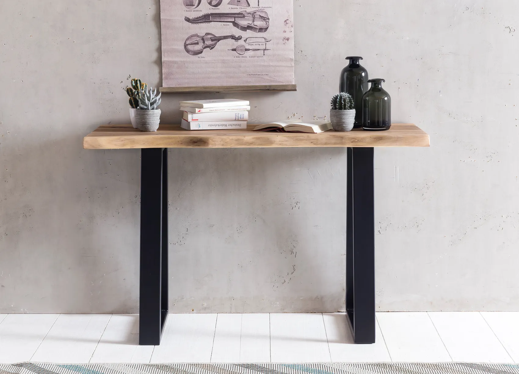 WOHNLING Konsolentisch GAYA WL1.829 Baumstamm Massivholz Konsole Akazie Sekretär 120 x 45 cm