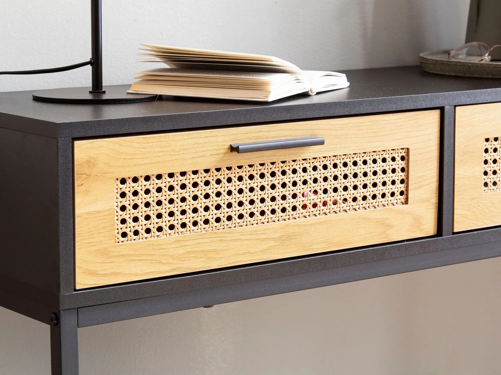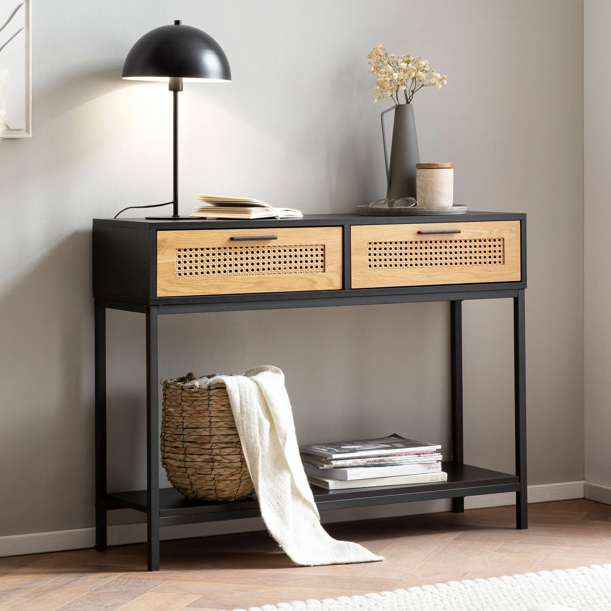Wohnling Konsolentisch Schwarz 100x30x75 cm, Ablagetisch Schmal mit Wiener Geflecht