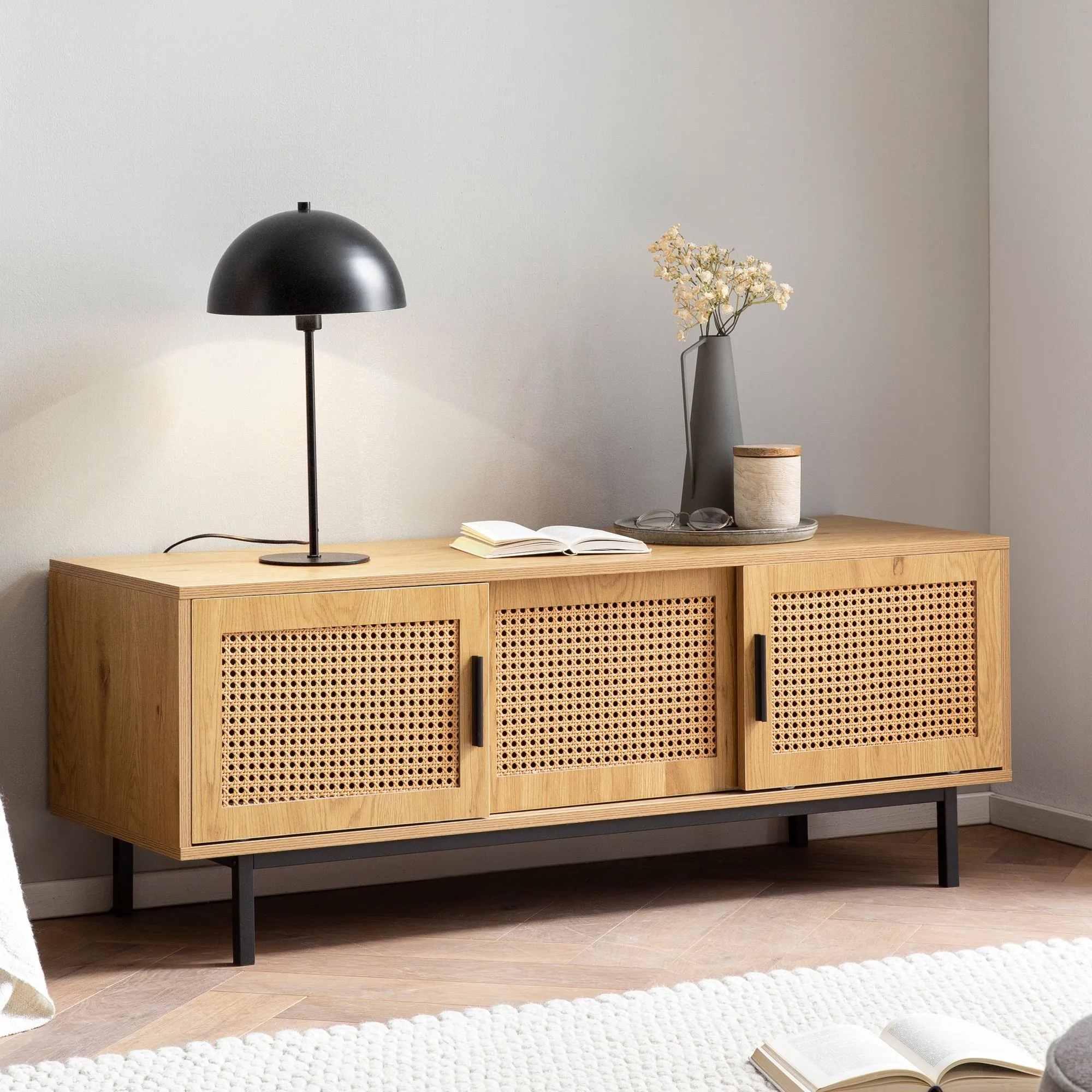 Wohnling Lowboard Eiche-Dekor mit Wiener Geflecht 120x45,5x40 cm
