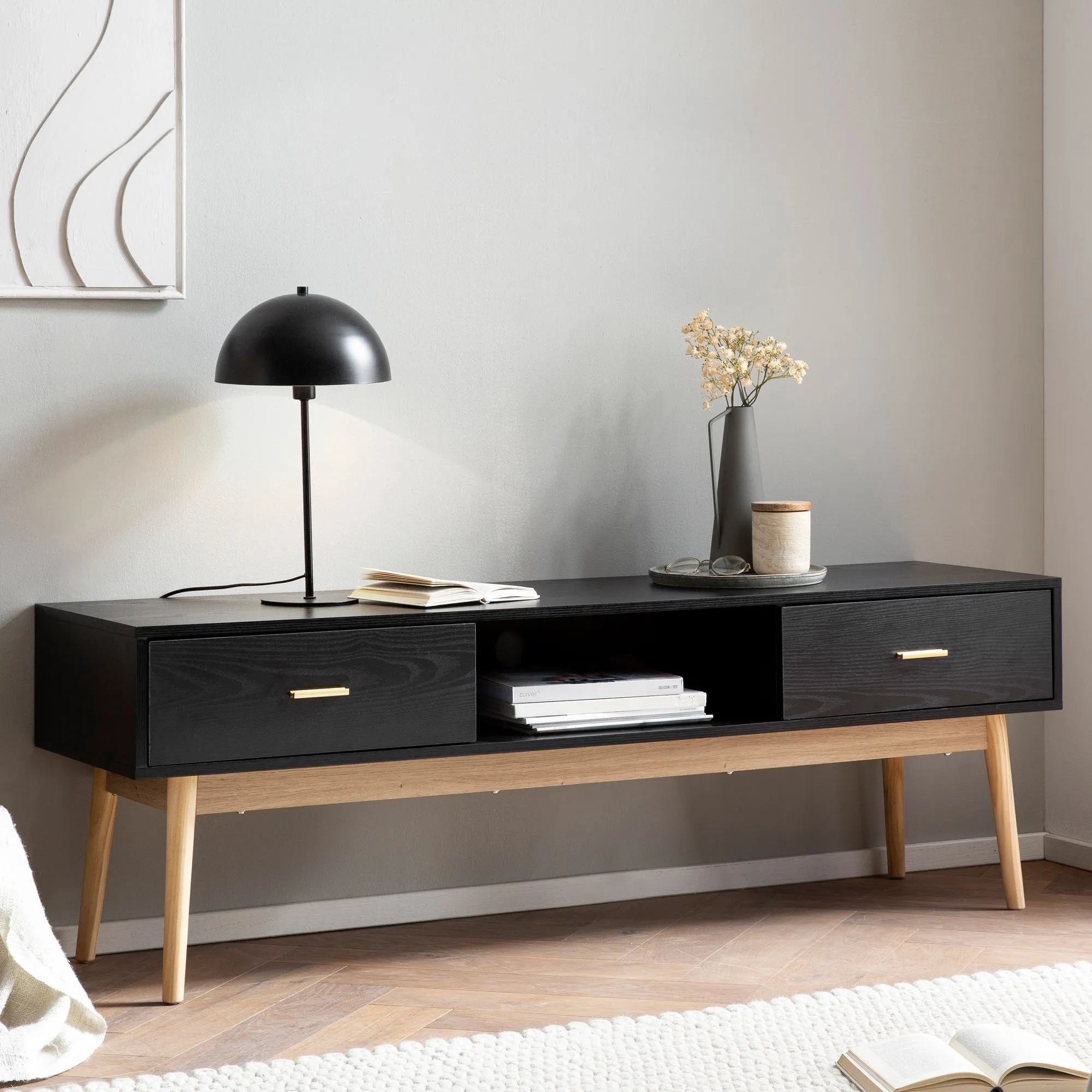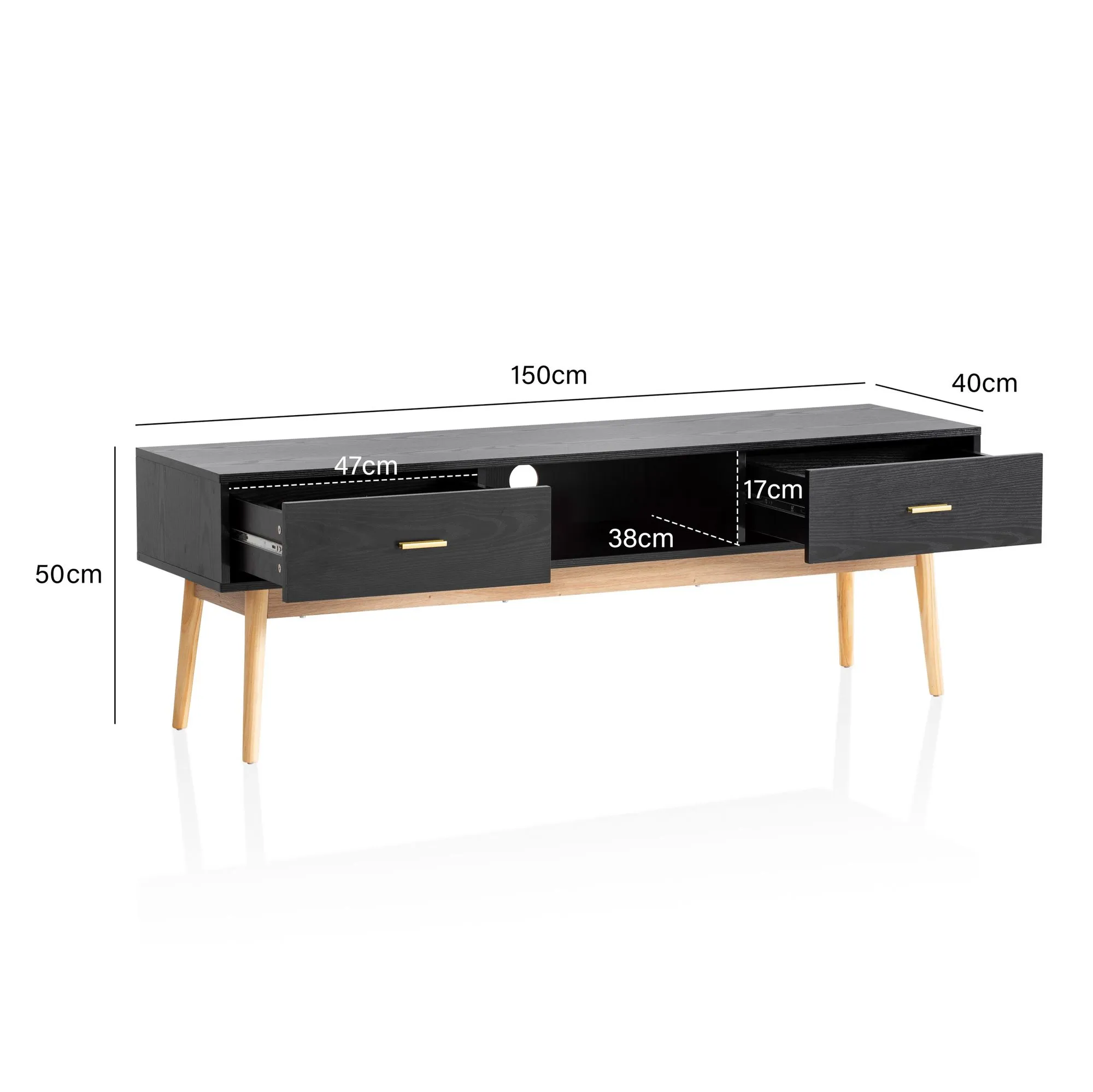 Wohnling Lowboard Schwarz mit Eiche-Dekor 150x50x40 cm TV-Kommode Modern