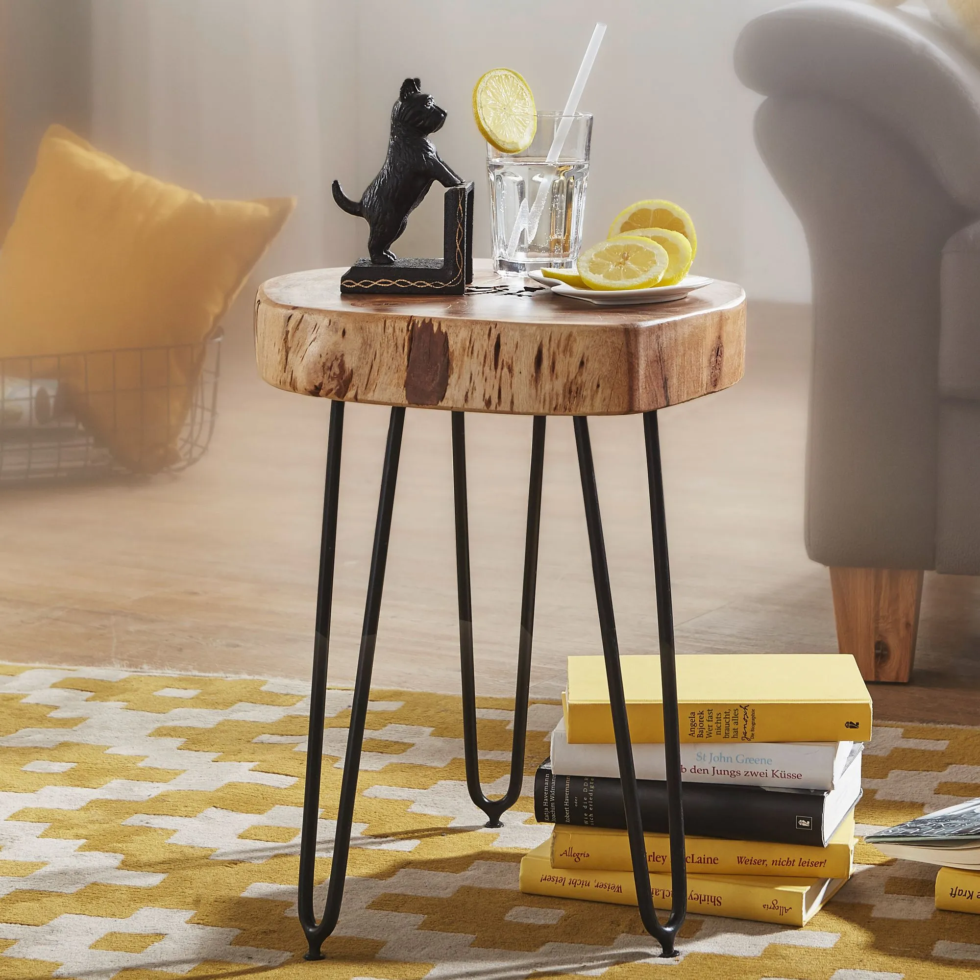 Wohnling Massivholz Akazie Beistelltisch BAGLI 35 x 35 cm Wohnzimmertisch Massiv Anstelltisch Holztisch Echtholz Baumkante