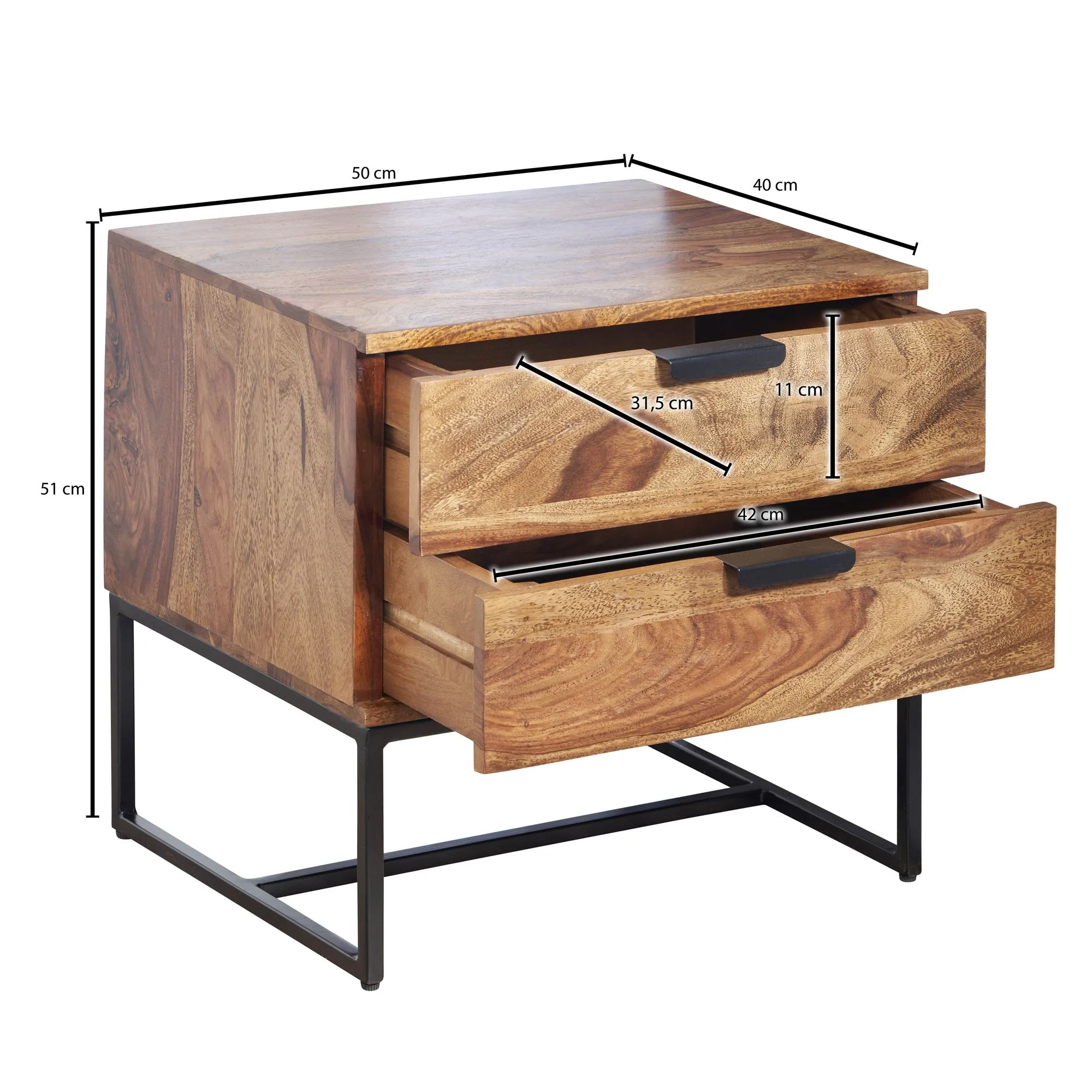Wohnling Nachttisch Sheesham Massivholz / Metall 50x40x51 cm Nachtschrank Boxspringbett
