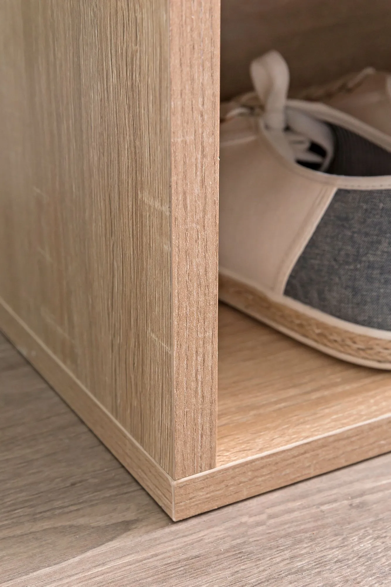 - Zwei Ebenen zur Unterbringung der Schuhe