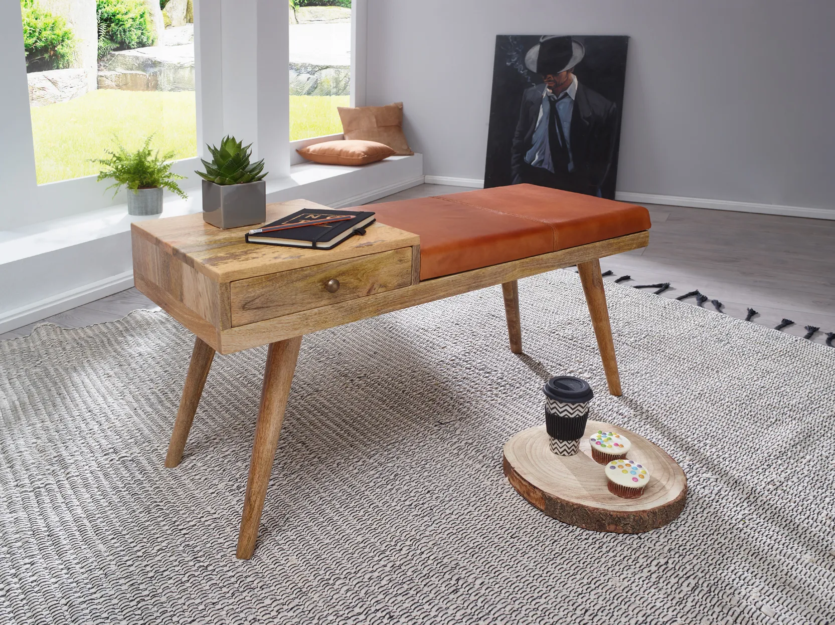 - Stimmiger Materialmix aus Massivholz und Echtleder