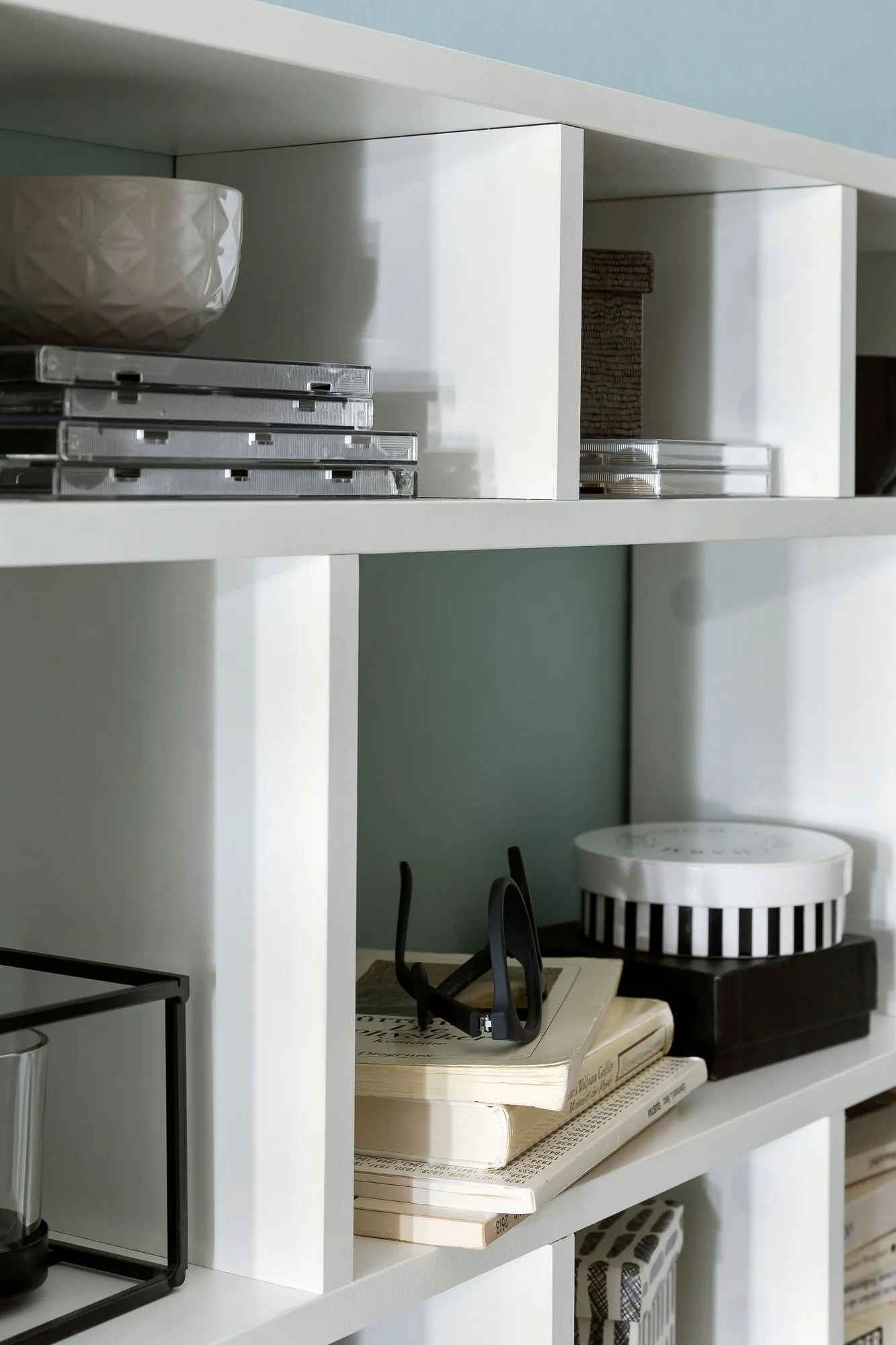 - Neun Regalfächer in verschiedenen Größen