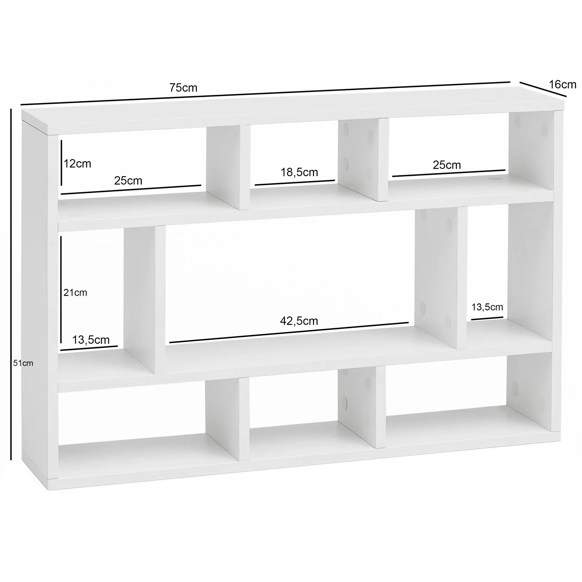 WOHNLING Wandregal Aura WL5.810 Weiß 75x51x16 cm Holz Hängeregal Modern | Design Wandboard Freischwebend | Holzregal Regal für die Wand | Bücherregal Schmal | Dekoregal Schweberegal Wohnzimmer