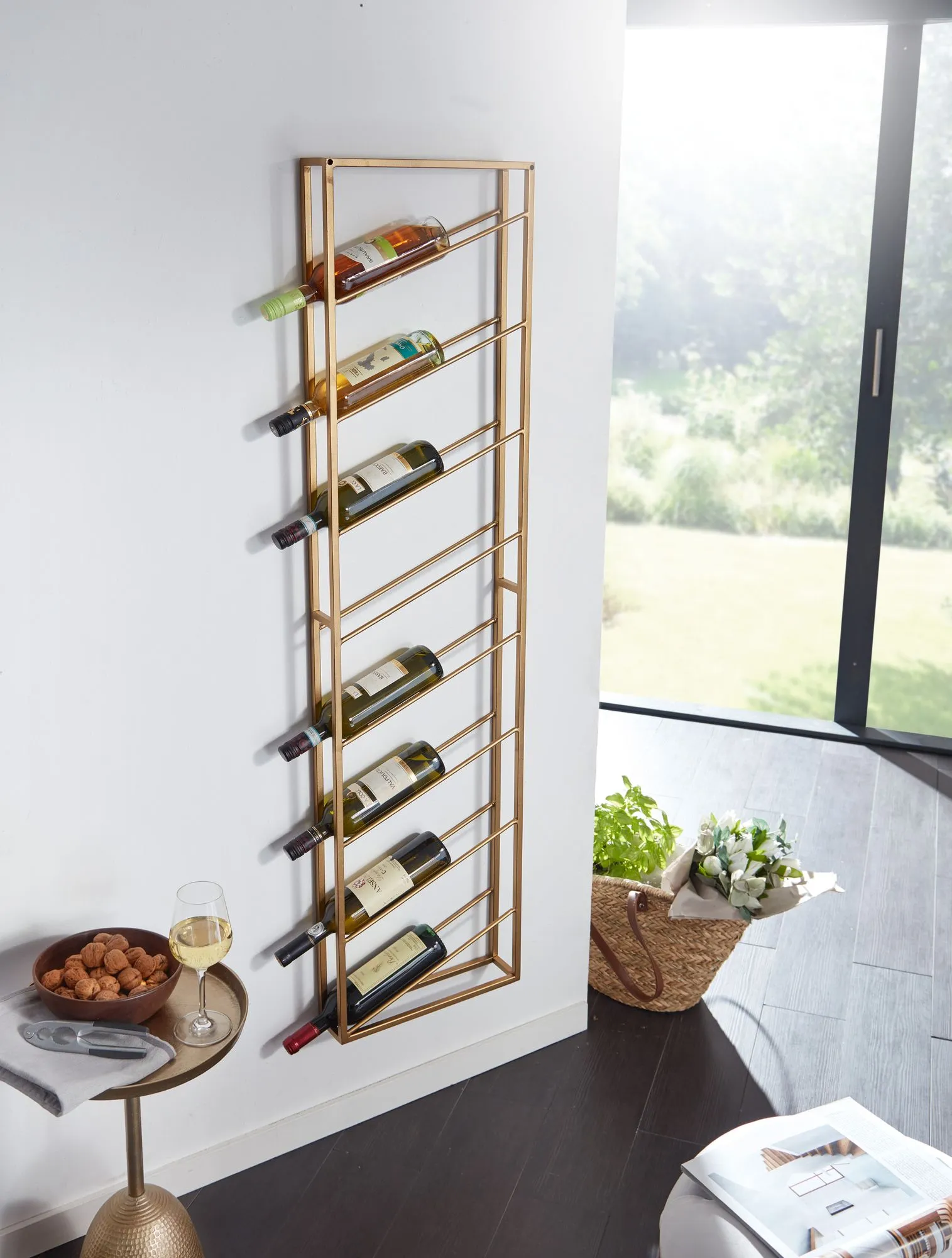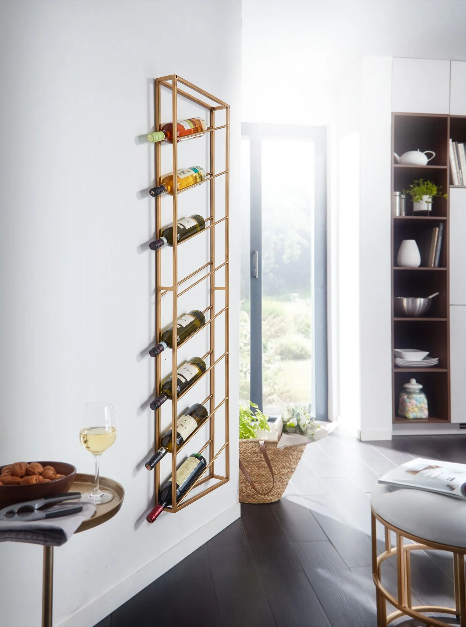 Wohnling Weinregal Wand Metall Gold 36x150x8 cm groß für 8 Flaschen