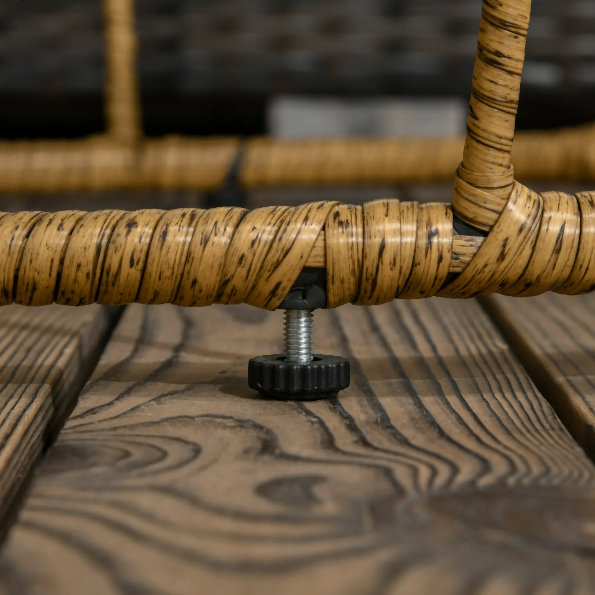 - Rundes PE-Rattan-Geflecht verleihen diesem Tisch einen Boho-Chic