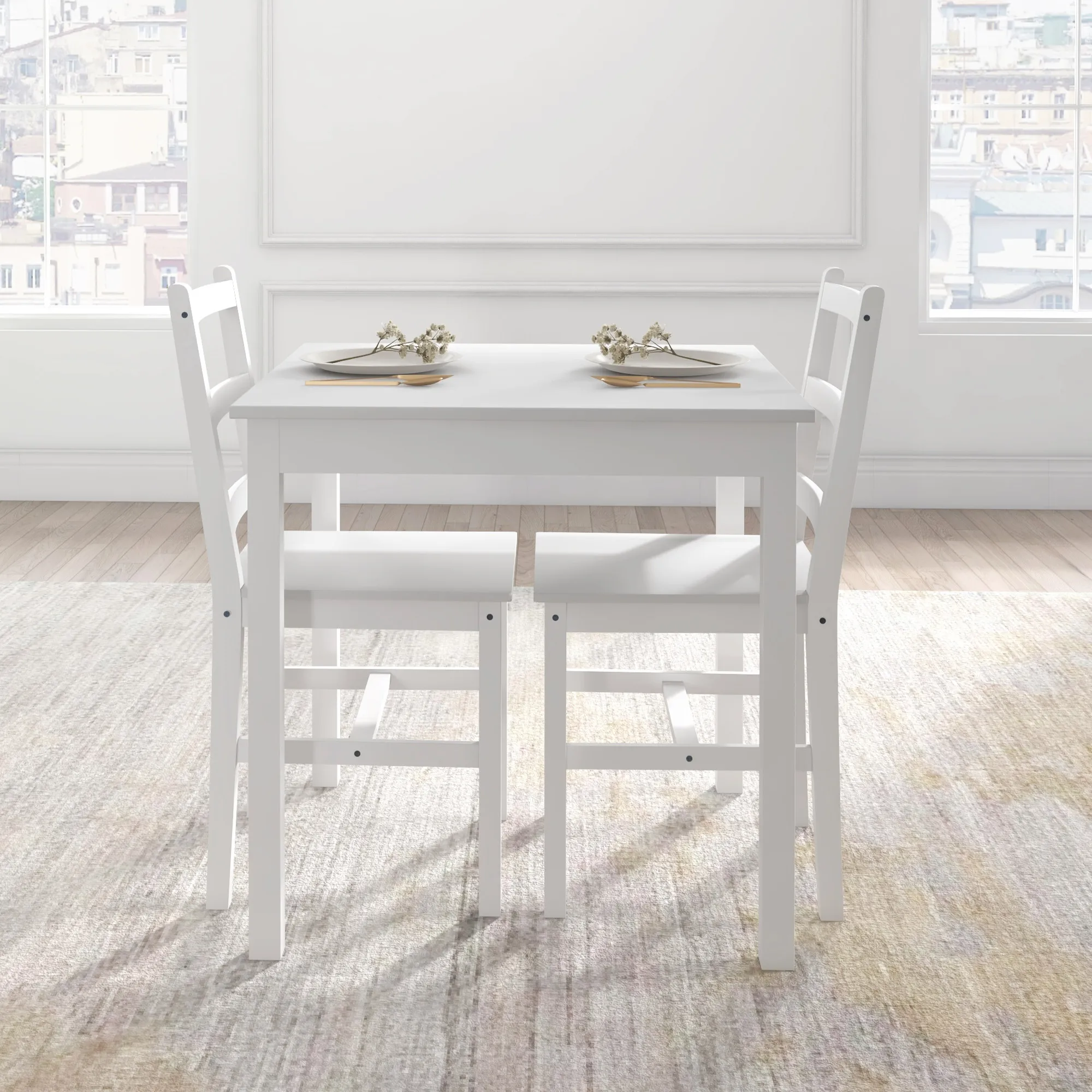 3-teilige Essgruppe Sitzgruppe Tisch mit Stühlen, Massivholz, Weiß